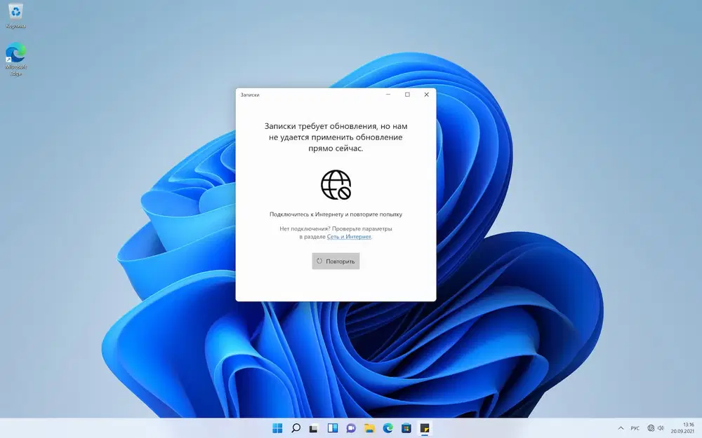 Если устройство Windows 11 работает в автономном режиме, то такие приложения, как «Записки» (Sticky Notes) запустить не получится до тех пор, пока вы не установите соединение с Интернетом для загрузки необходимых компонентов из Microsoft Store.