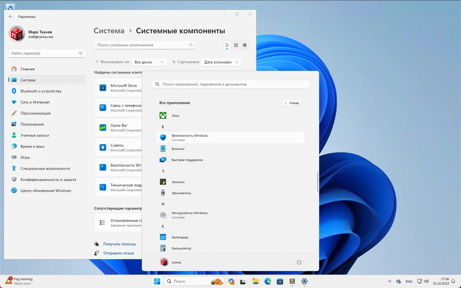 - В этом обновлении были внесены изменения в способ управления приложениями, и теперь в разделе "Все приложения" в меню "Пуск" Windows 11 системных компонентов будет отображаться метка "Система". Управление этими компонентами теперь осуществляется через "Параметры > Система > Системные компоненты".