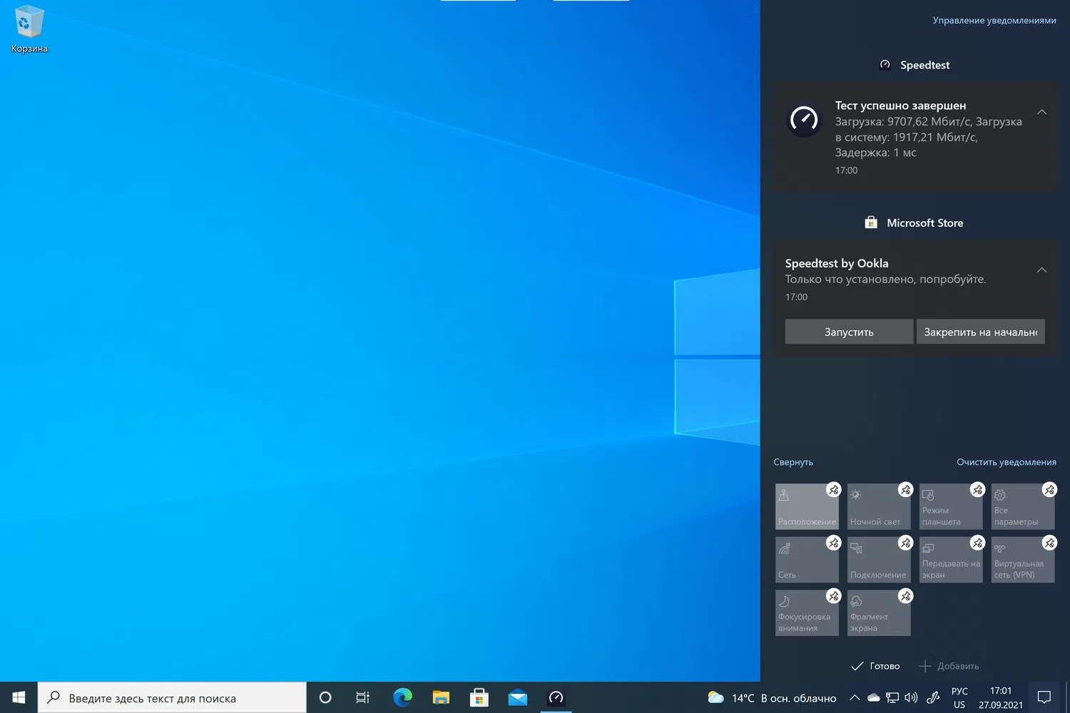 В Windows 10 используется отдельный интерфейс под названием «Центр действий», доступ к которому можно получить с помощью значка в правом углу панели задач. В нижней части на панели собраны все быстрые настройки, а в верхней части отображаются уведомления. Вы можете открывать или пролистывать уведомления, а также использовать или откреплять быстрые настройки в едином интерфейсе.
