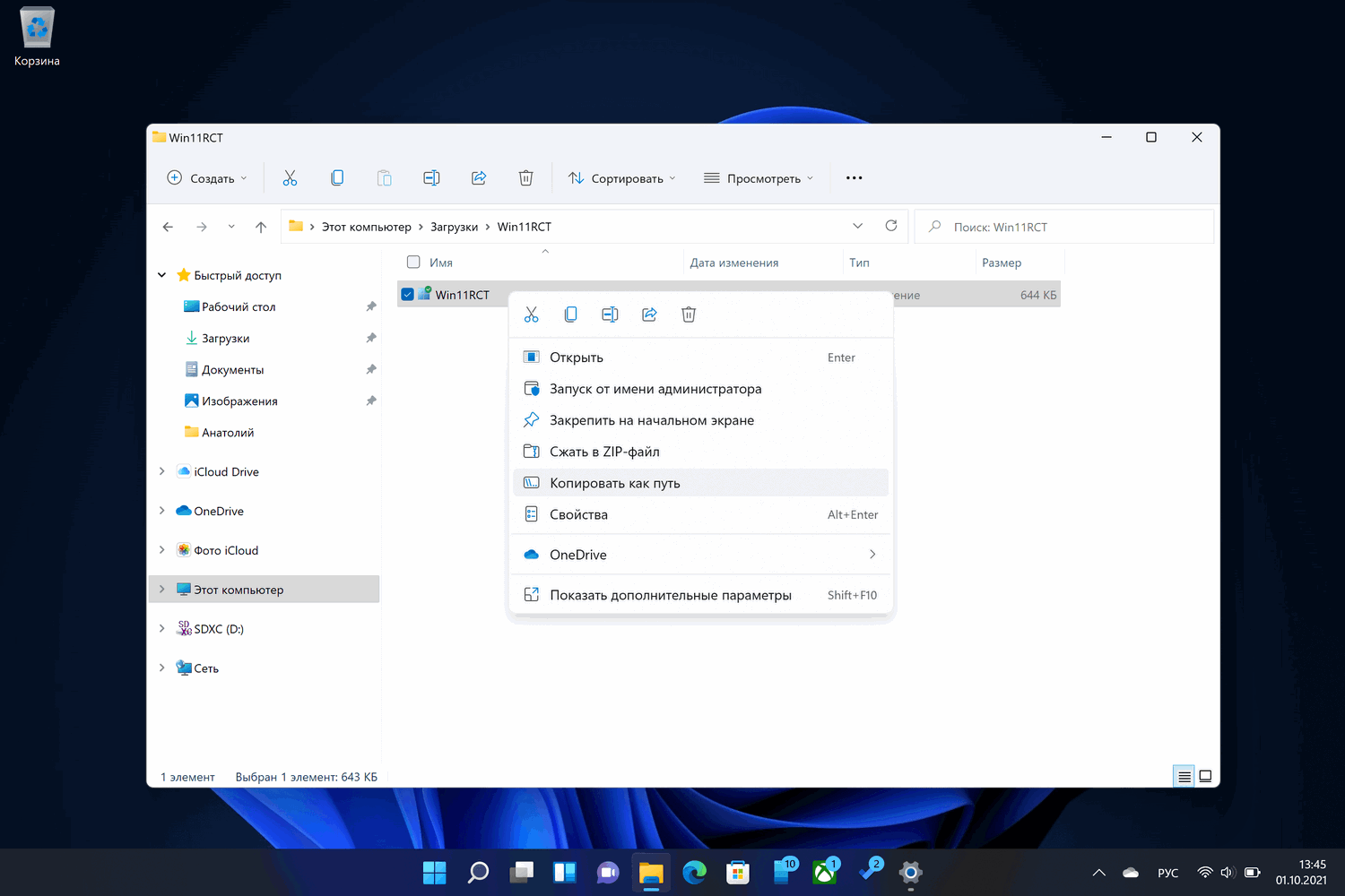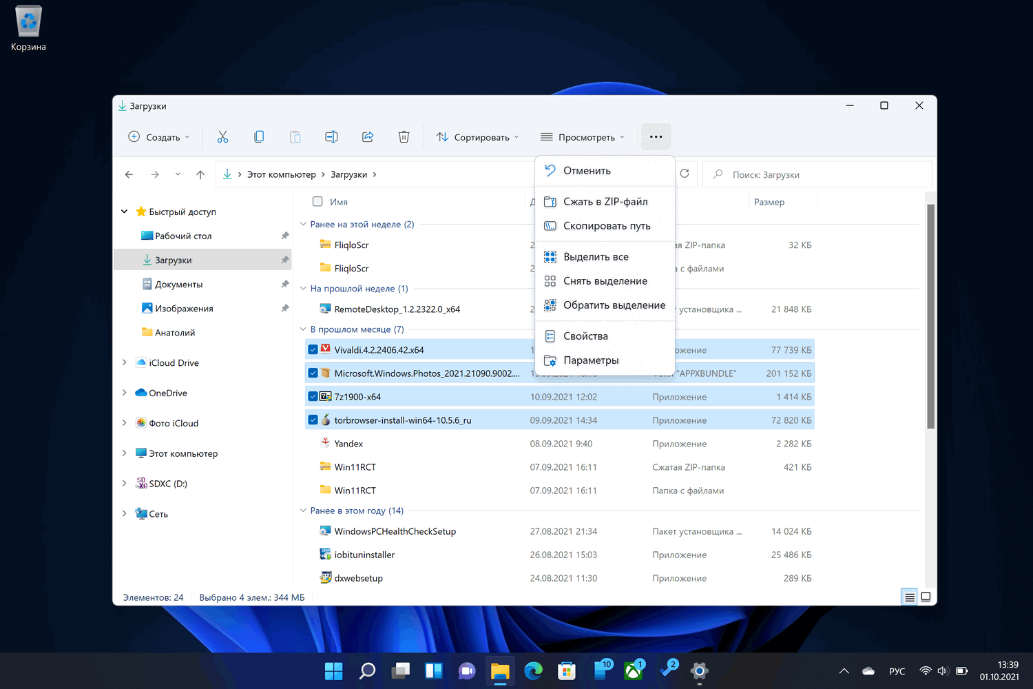 В Проводнике Windows 11 появилось новое контекстное меню с быстрыми действиями, такими как вырезать, копировать, переименовать, поделиться и удалить, и дополнительными функциям. Все остальные параметры, к которым вы привыкли в Windows 10, были перенесены в опцию Показать дополнительные параметры, которая открывает классическое контекстное меню из Windows 10.