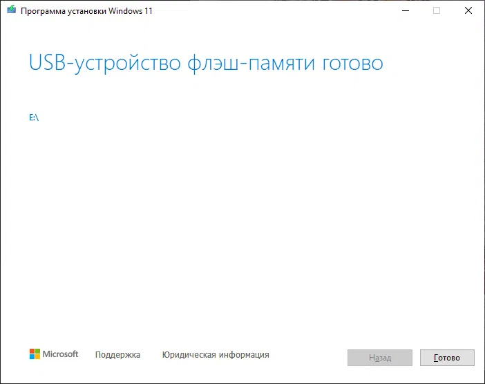 7. Загрузочная USB-флэшка для установки Windows 11 готова. Вы можете использовать её как для чистой установки операционной системы Windows 11, так и для обновления Windows 10 до Windows 11.