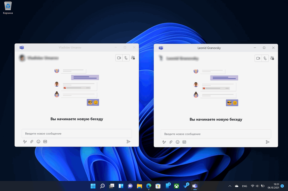 Хотя вы можете открывать несколько чатов в отдельных окнах при наведении курсора на кнопку Развернуть не отображается всплывающее окошко с макетами привязки. При этом сама привязка работает, если использовать горячие клавиши Windows + стрелки или с помощью ручного перетаскивания окна в угол экрана. Все это выглядит очень странно, когда Microsoft говорит о глубокой интеграции с ОС и неудобно с точки зрения многозадачности.