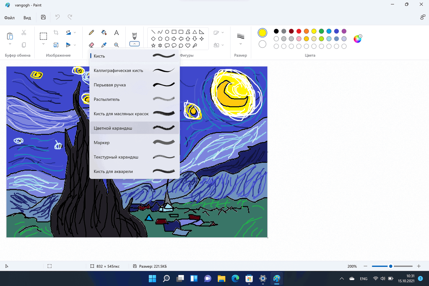 Вкладки в верхней части интерфейса также имеют довольно интересную модификацию поведения. Файл и Вид теперь является скорее не вкладками, а раскрывающимися списками и при наведении курсора на них отображаются те же параметры, что и на вкладках Windows 10. Вкладка Главная, доступная в Windows 10, теперь исчезла. Фактически в Windows 11 нет вкладок, которые можно было бы посмотреть — в новом Paint доступен только холст, инструменты и раскрывающиеся меню. Таким образом, вы получаете все необходимые инструменты на одном экране — хороший подход!