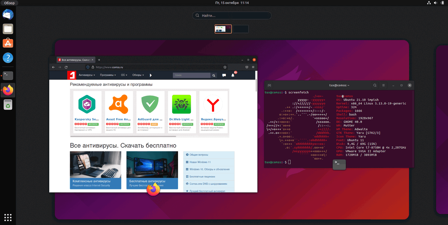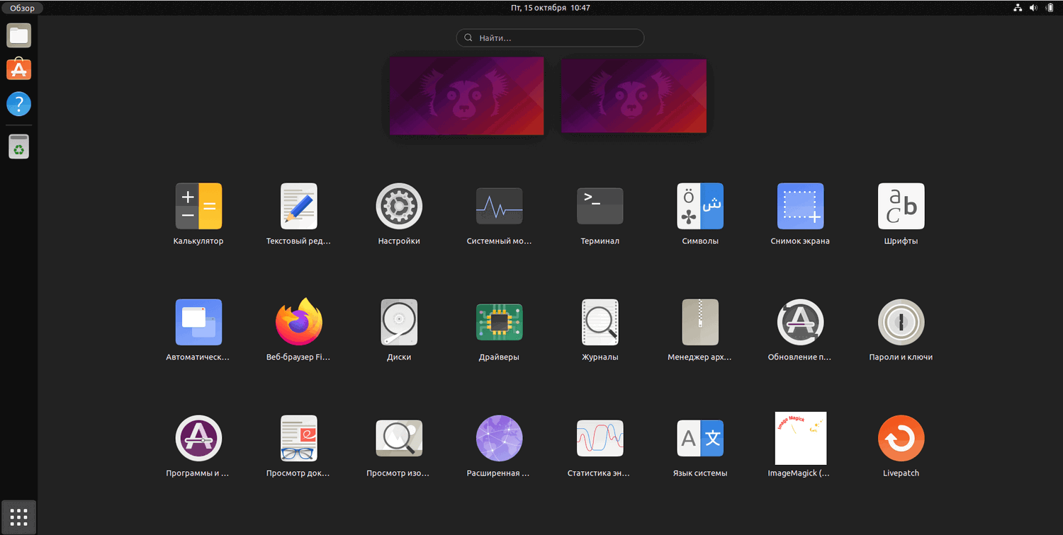 Одним из самых важных изменений в Ubuntu 21.10 является использование рабочего окружения версии Gnome 40 в качестве среды рабочего стола по умолчанию.
