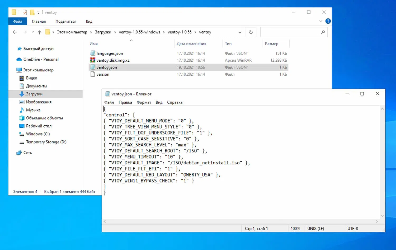 Совет: вы также можете скачать готовый файл JSON по ссылке: ventoy.json.