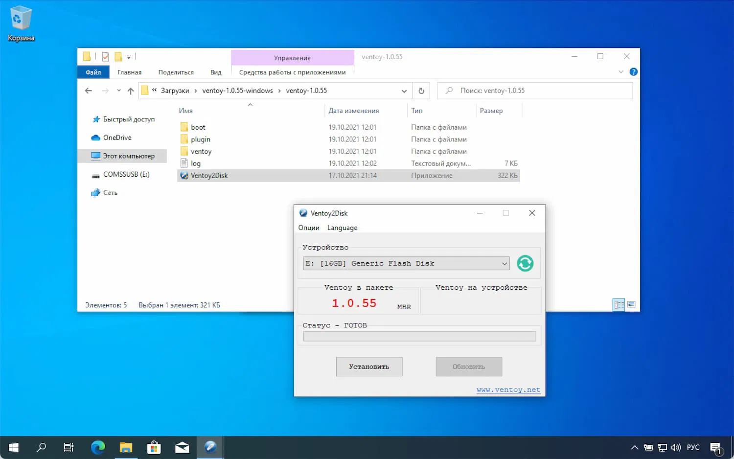 Загрузите новейшую версию Ventoy 1.0.55 с нашего сайта. Программа доступна для Windows и Linux. Версия для Windows поставляется в виде Zip-файла, который необходимо распаковать после загрузки.