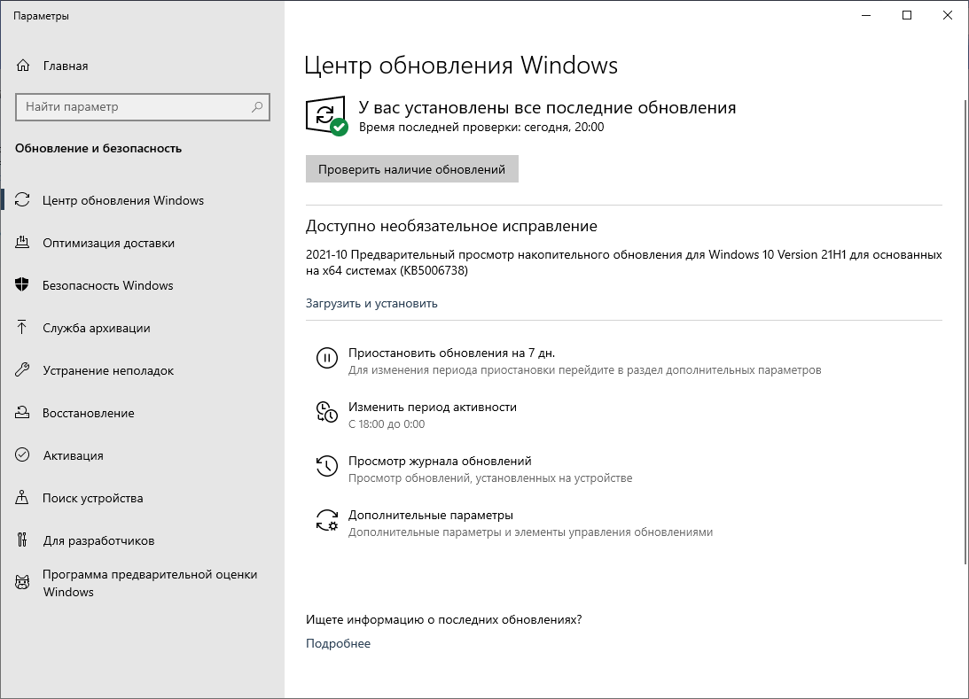 Обновлено: 26.10.2021. Обновление KB5006738 (Сборки 19043.1320, 19042.1320 и 19041.1320) Preview доступно для установки в Центре обновления Windows как «необязательное исправление» и для ручной загрузки в Каталоге Центра обновления Майкрософт.