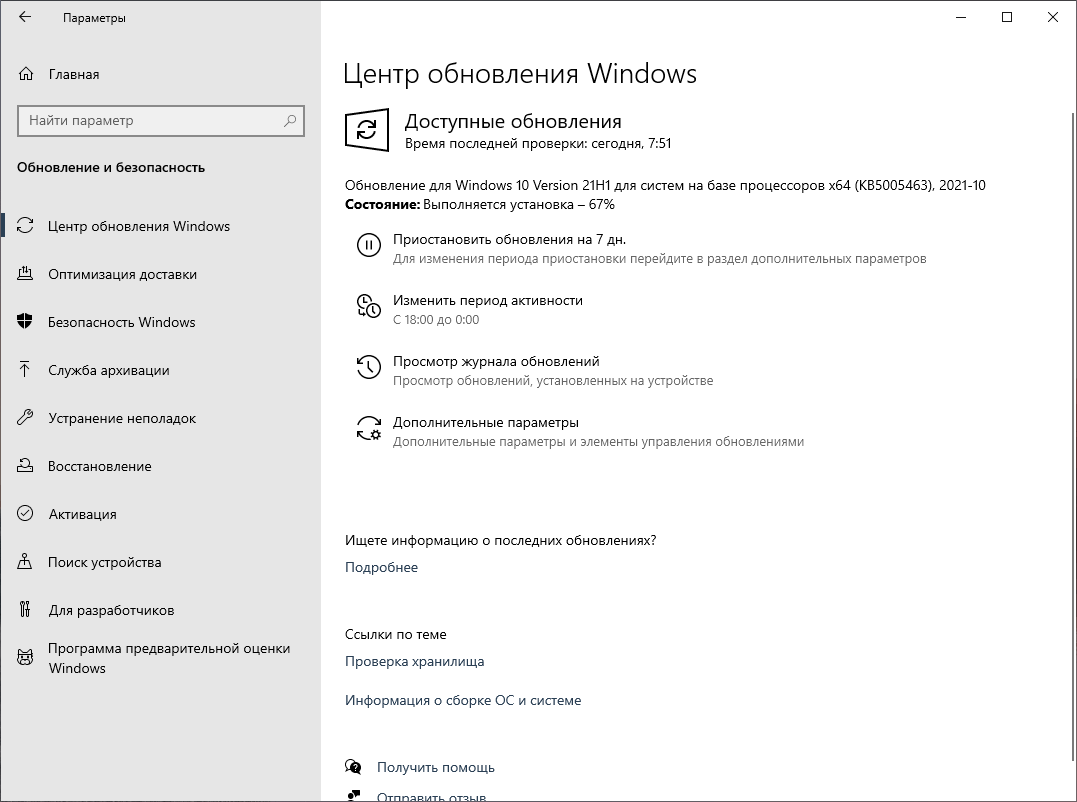 Обновление KB5005463 для Windows 10, версия 2004, Windows 10, версия 20H2 и Windows 10, версия 21H1 устанавливается автоматически через Центр обновления Windows.