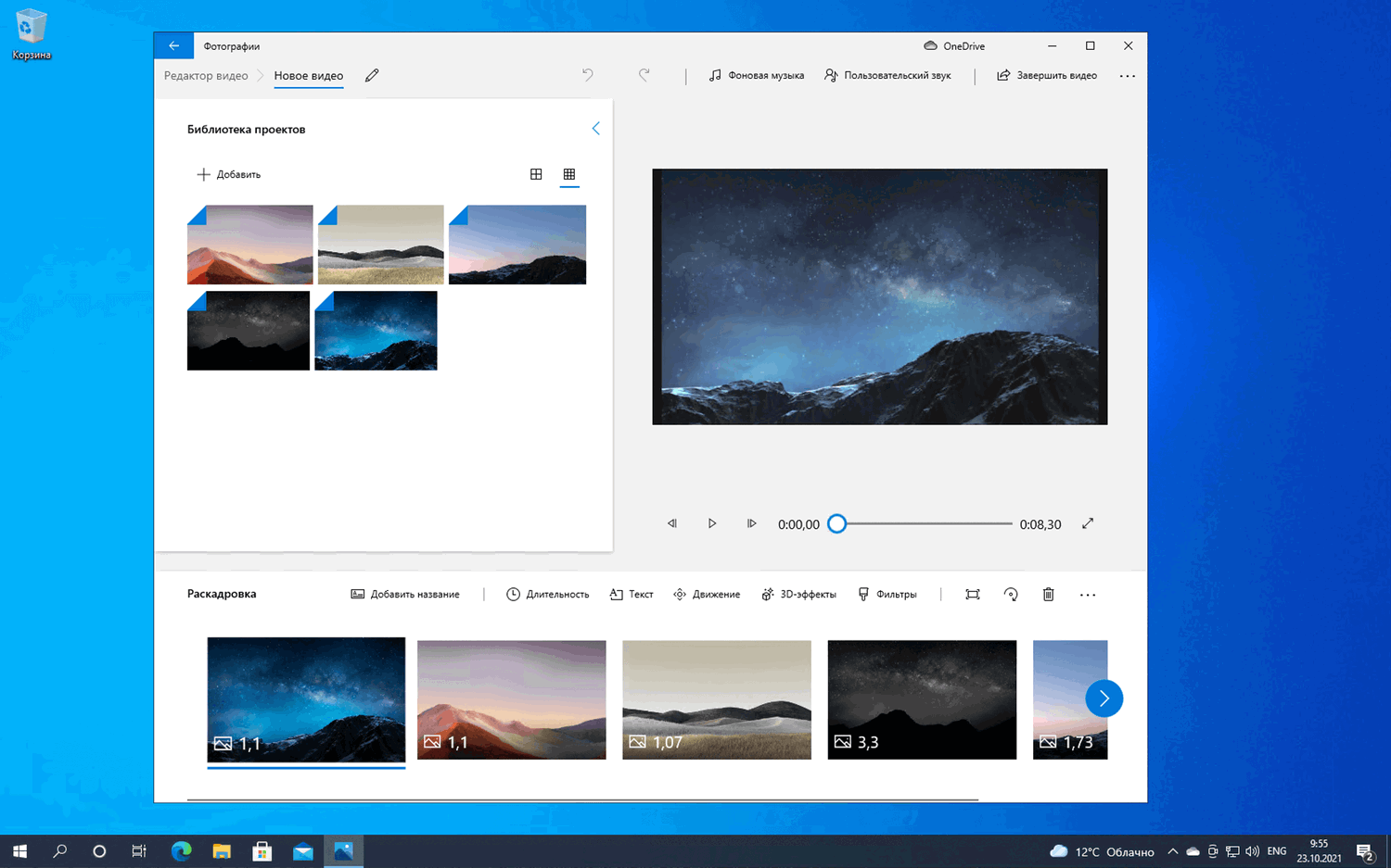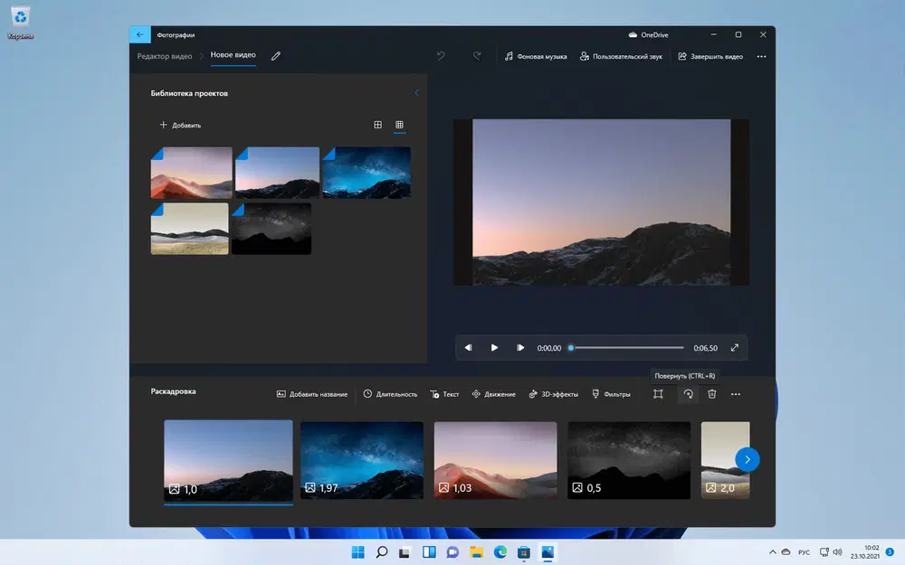 Приложение «Фотографии» имеет встроенный видеоредактор. Вы можете использовать ваши фотографии для созданий видеопроекта или начать новый проект с нуля. Многие опции редактирования видео являются схожими с возможностями редактирования изображений. Вам также доступны фильтры, 3D-эффекты и многое другое. Также предусмотрены специфичные для видео функции, например карточки подписей, кадровая частота и движения камеры. Вы можете добавить музыку к своим видеороликам, изменить соотношение сторон и выполнить экспорт видео с использованием аппаратного ускорения. Интересно, что экспорт доступен только в формате MP4. Это должно подойти для некоторых базовых сценариев использования.