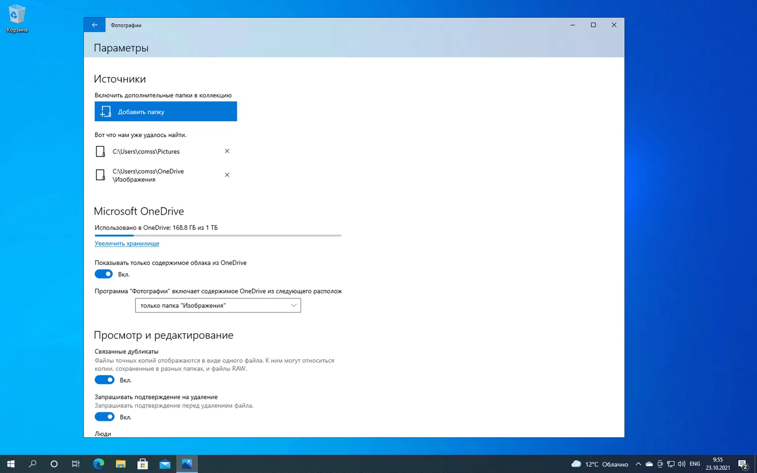 Приложение «Фотографии» поддерживает интеграцию с OneDrive, объединение дубликатов, использование колесика мыши для масштабирования, разрешает автоматическое создание альбомов, индексацию и много другое. Пользователю доступно для настройки приличное количество параметров. Однако, найти искомый параметр не всегда просто, и панель поиска в верхней области была бы очень кстати.
