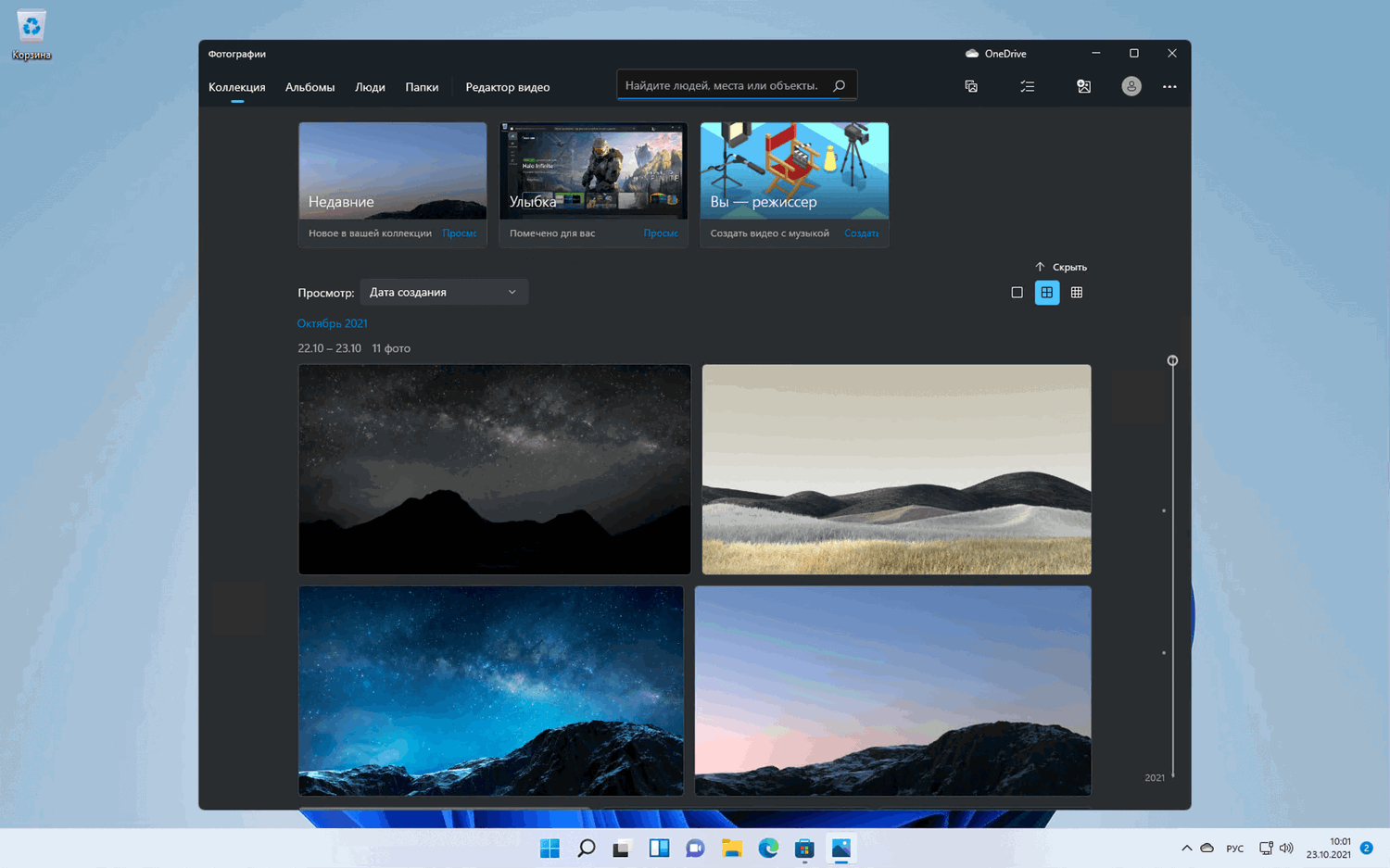 При тестировании приложения были обнаружены некоторые ошибки. Миниатюры альбомов Недавние и В этот день не отображаются, пока на них не будет наведен курсор. Даже после этого они то появляются, то исчезают в приложении. Возможно, это связано с тем, что изображения не успели загрузиться из OneDrive, но при открытии альбома все фотографии отображались корректно.