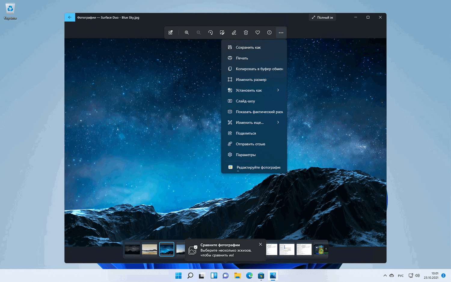 Упоминания Paint 3D были удалены, потому что Microsoft постепенно отказывается от данного инструмента. Другие трехмерные элементы были сохранены и доступны в меню «три точки». Понятно, что они не являются основным приоритетом для Microsoft сейчас. Значок обрезки изображения теперь отсутствует, но все остальные функции кажутся нетронутыми. Microsoft разработала новый интерфейс для просмотра нескольких изображений, который позволяет сравнивать фотографии. Компания могла бы расширить эту функциональность, предусмотрев возможность создания коллажей, но этот потенциал не используется.
