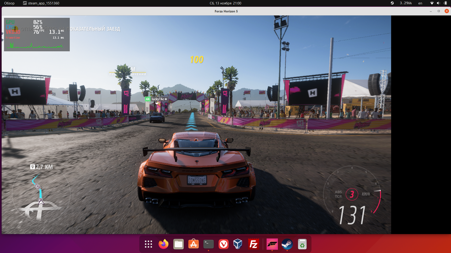 Конечно, на данный момент решение не может быть идеальным. Но приятно знать, что последняя версия Proton Experimental ветки bleeding-edge позволяет играть в Forza Horizon 5 (через Steam) в системах Linux.