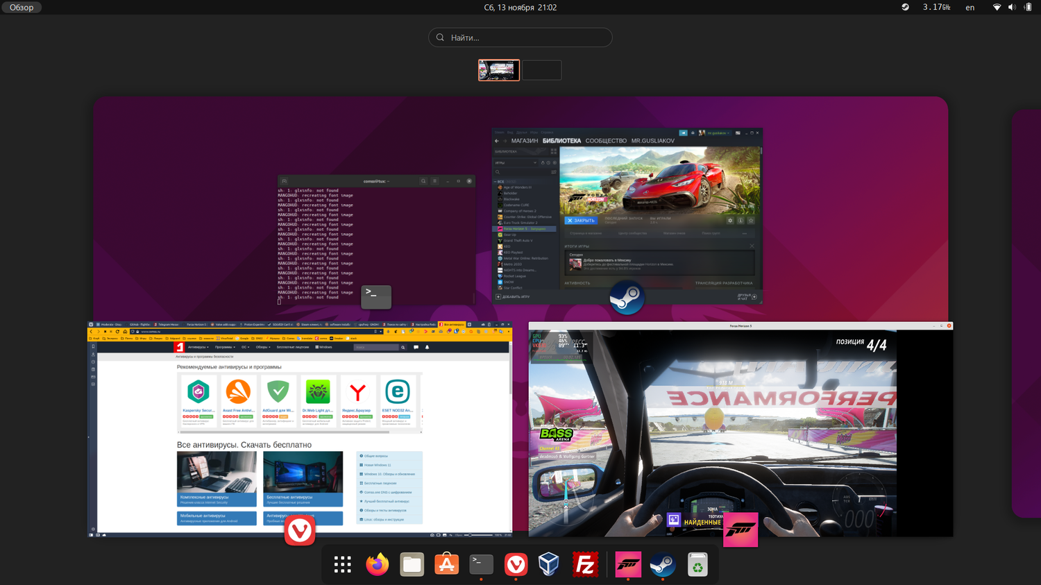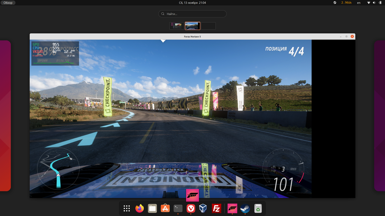 Джереми Соллер (разработчик из System76) поделился твитом, в котором можно увидеть, как он играет в Forza Horizon 5 в операционной системе Pop! _OS 21.10 Beta:
