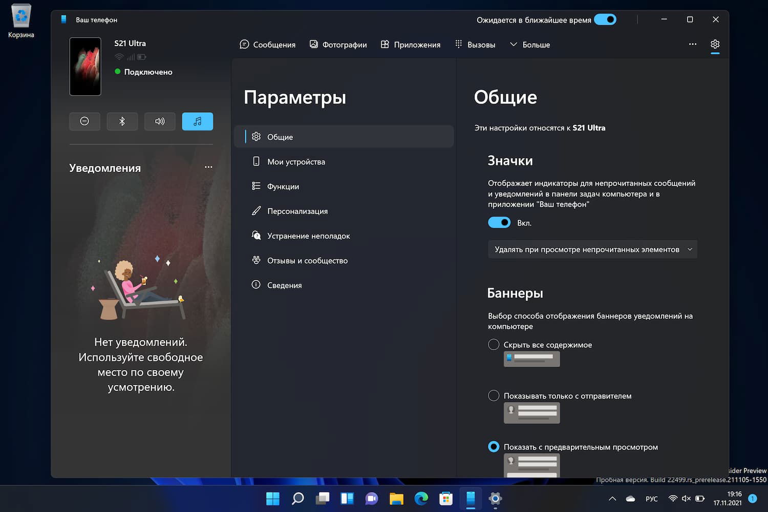 Новый интерфейс «Ваш телефон» доступен для инсайдеров Windows 11
