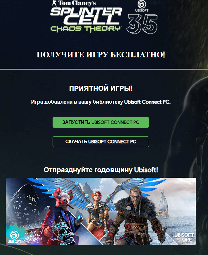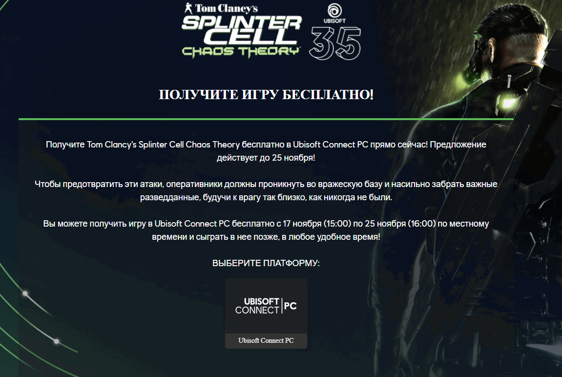 Для получения бесплатной лицензии на игру Tom Clancy’s Splinter Cell: Chaos Theory выполните следующие действия: