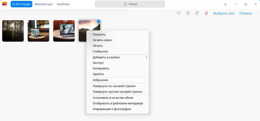 Улучшено управление фотографиями в Deepin с помощью приложения Фотоальбом. Расширены возможности пакетного выбора, предварительный просмотр фото и видео. Также были добавлены некоторые новые кнопки для быстрых действий.