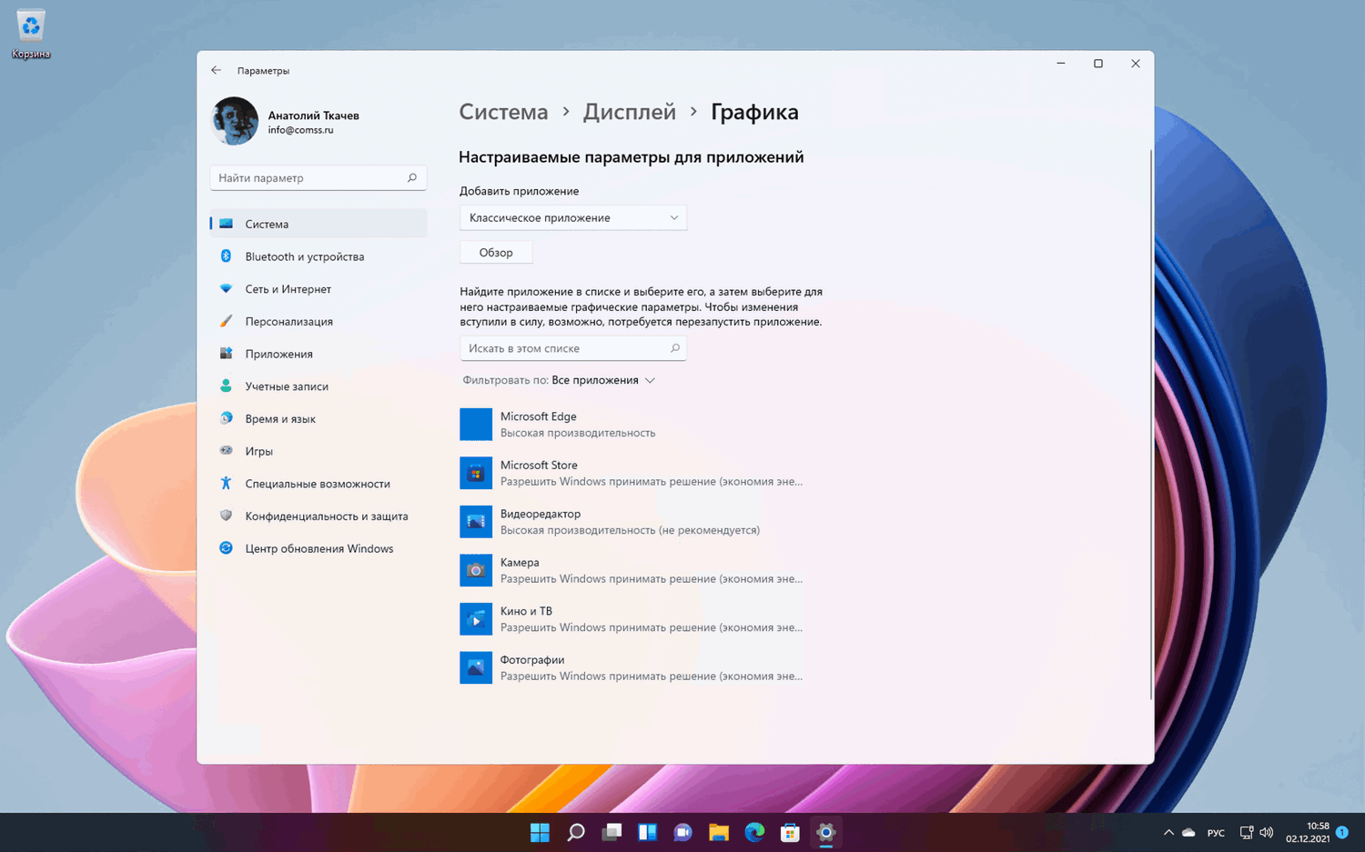 Еще одним положительным изменением является добавление путей перехода (так называемых «хлебных крошек»). На примере выше видно, что мы перешли в Система > Дисплей > Графика. Действительно, это отличное решение, которое упрощает навигацию по приложению «Параметры» в Windows 11. Вы можете легко переключаться между меню, не нажимая кнопку «назад», независимо от того, насколько глубоко перешли во вложенные страницы. Данное улучшение позволяет улучшить продуктивность при частом использовании приложения «Параметры».