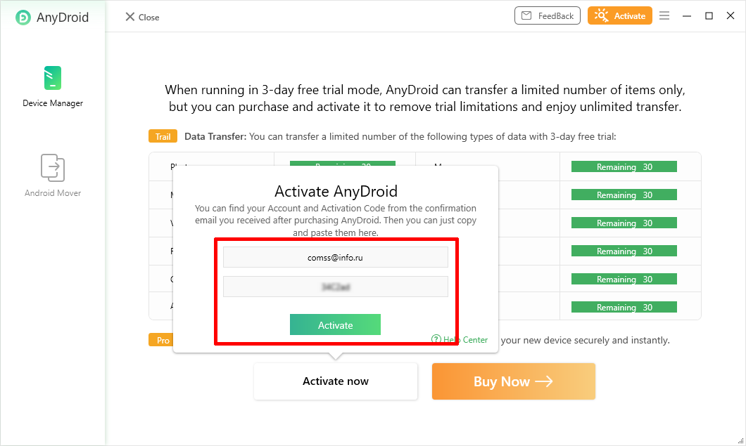 - Вы получаете бесплатную лицензию iMobie AnyDroid на один год.