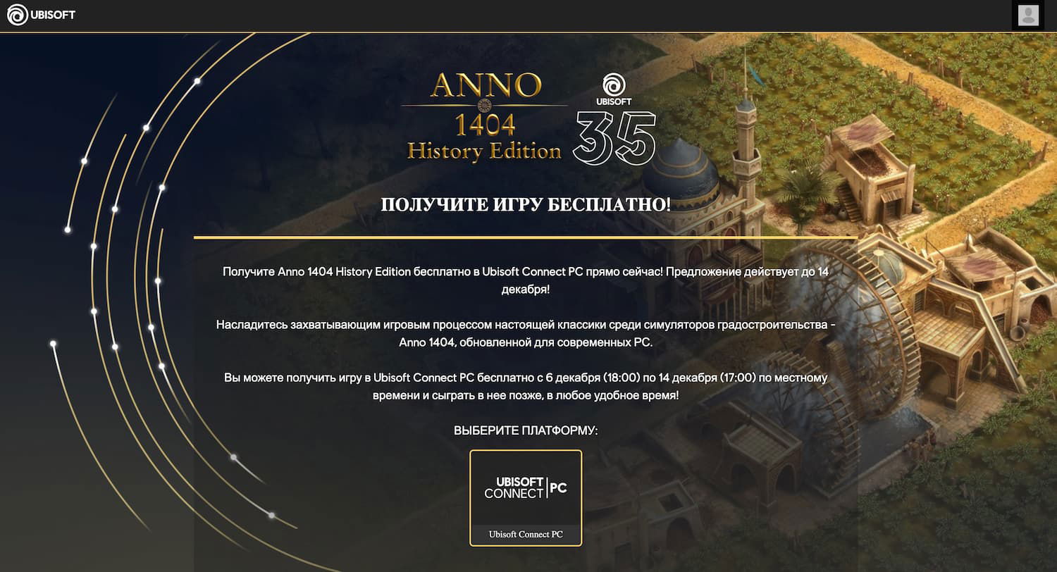 - Перейдите на страницу Anno 1404 History Edition и нажмите на кнопку Ubisoft Connect.