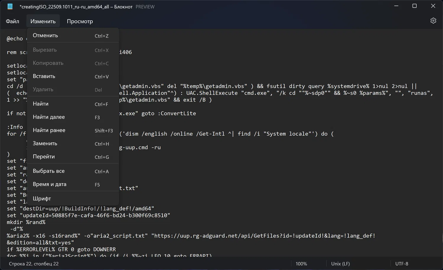 Меню Файл в новом Блокноте идентично меню в старой версии. В меню Изменить больше нет опции Поиск с помощью Bing, но есть новый ярлык для настройки параметров шрифта.