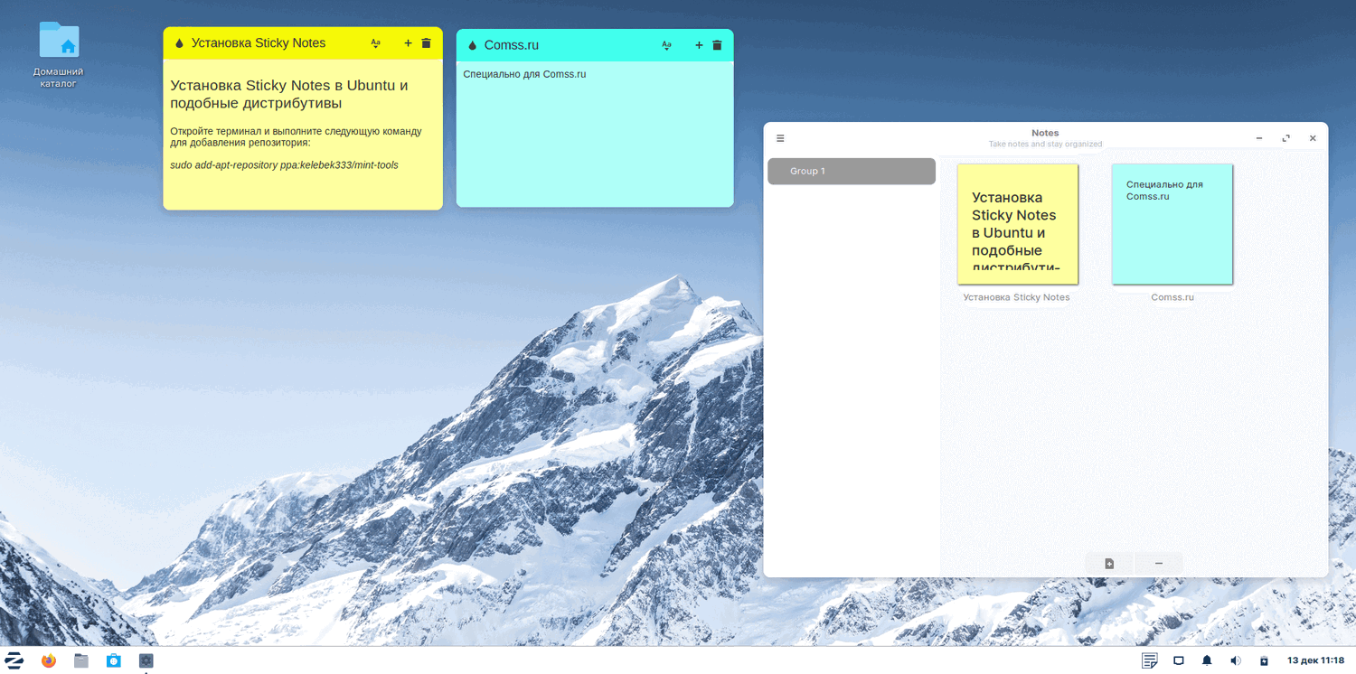 Установка Sticky Notes в Ubuntu и подобные дистрибутивы