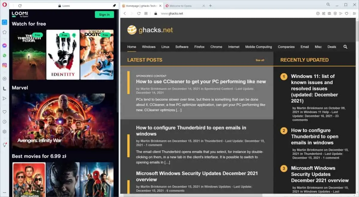 Пользователям из Польши в новейшей версии Opera доступен новый значок «L» на боковой панели. При клике по нему сервис Loomi отображается на боковой панели, аналогично тому, как открываются мессенджеры.