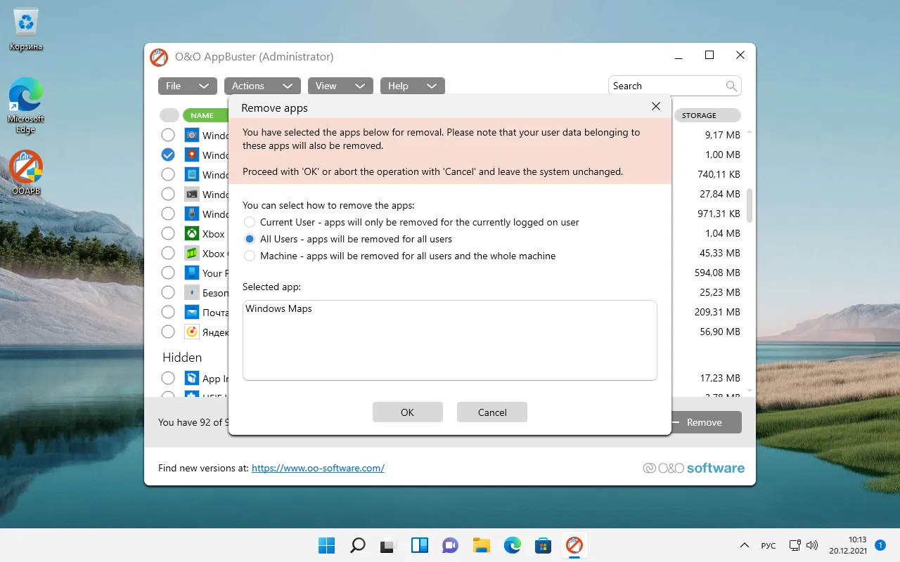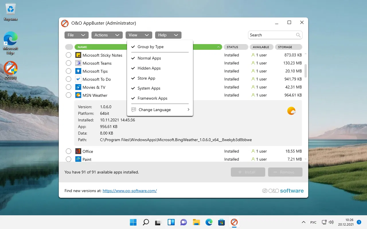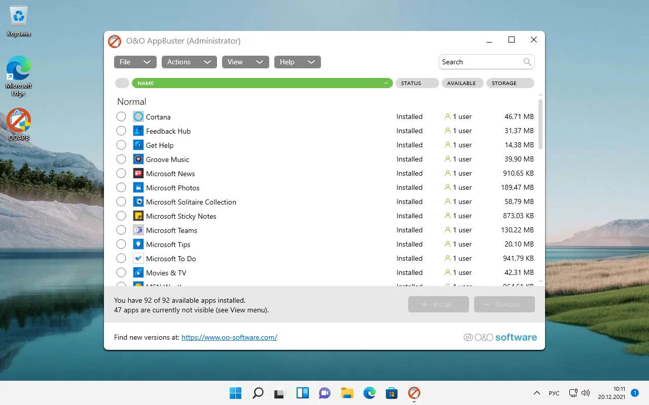 В декабре 2021 года немецкая компания-разработчик ПО O&O Software GMBH выпустила новую версию бесплатного приложения O&O AppBuster для Windows. Обновленная программа позволяет удалять предустановленные приложения Windows и предлагает полную совместимость с Windows 11.