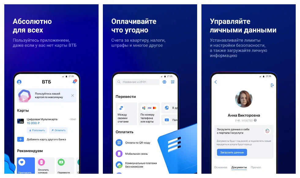 Скриншоты ВТБ-Онлайн* для Android и iOS