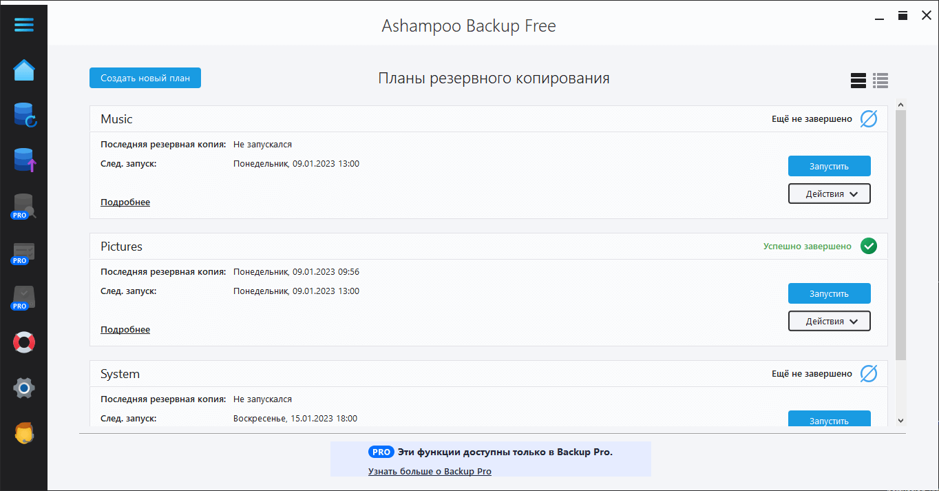 Скриншоты Ashampoo Backup FREE