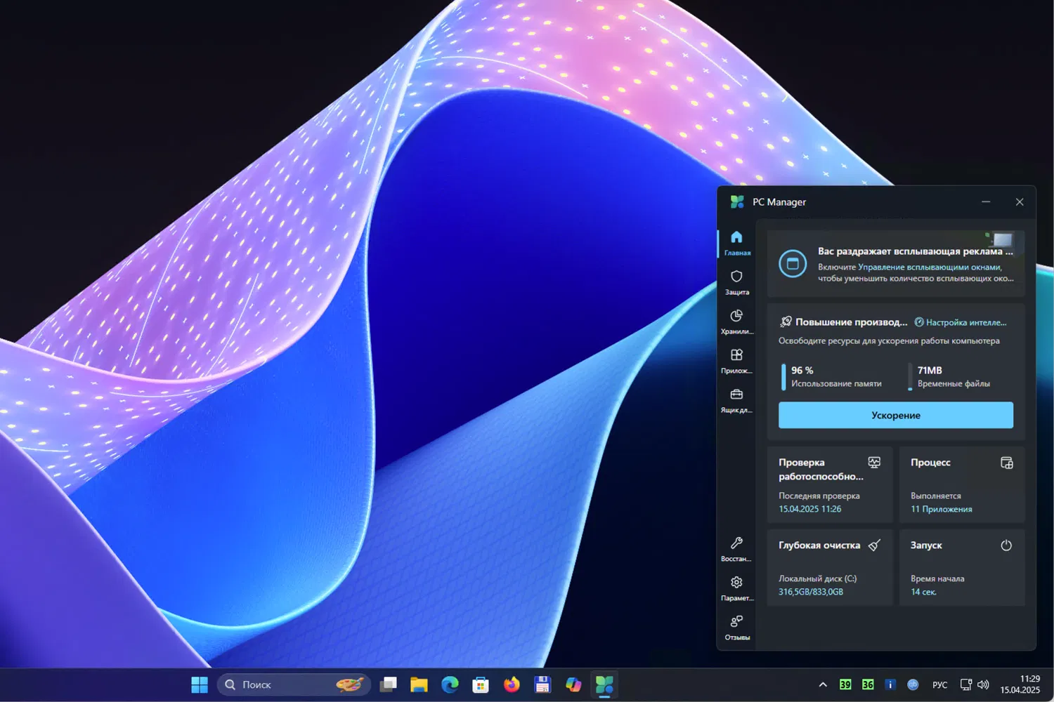 Скриншоты Microsoft PC Manager