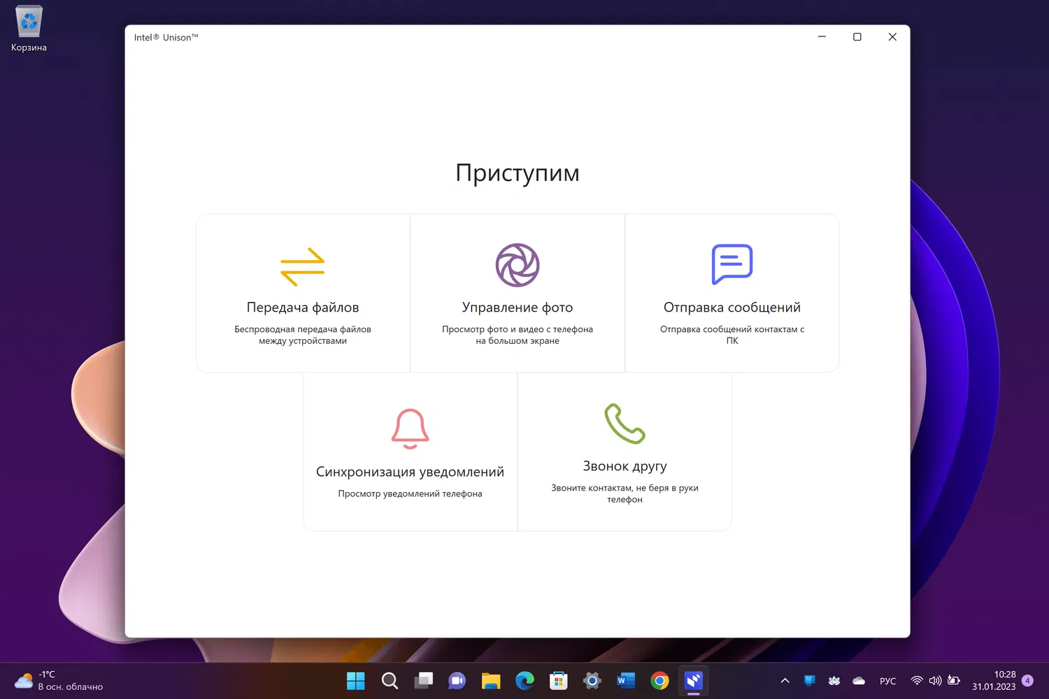 Скриншоты Intel Unison