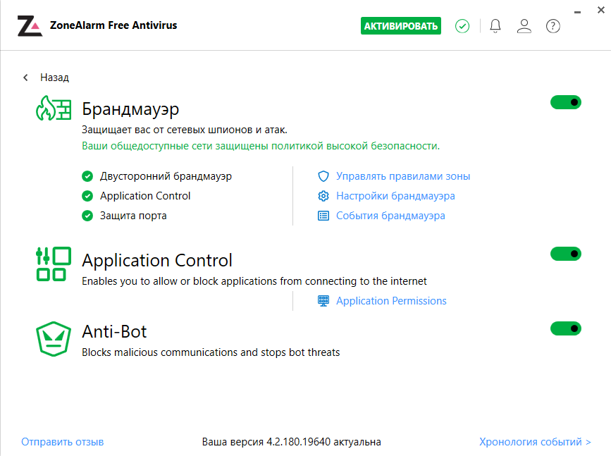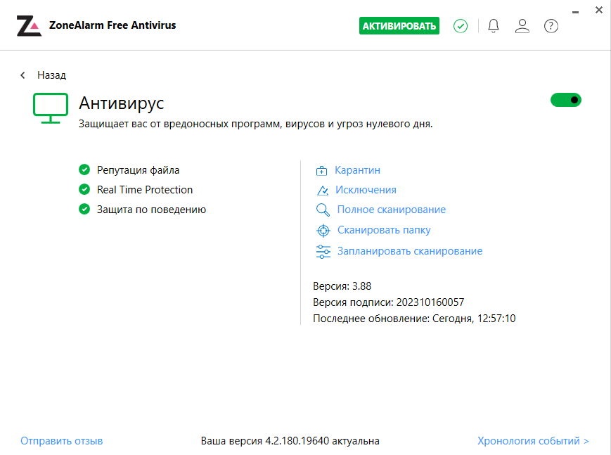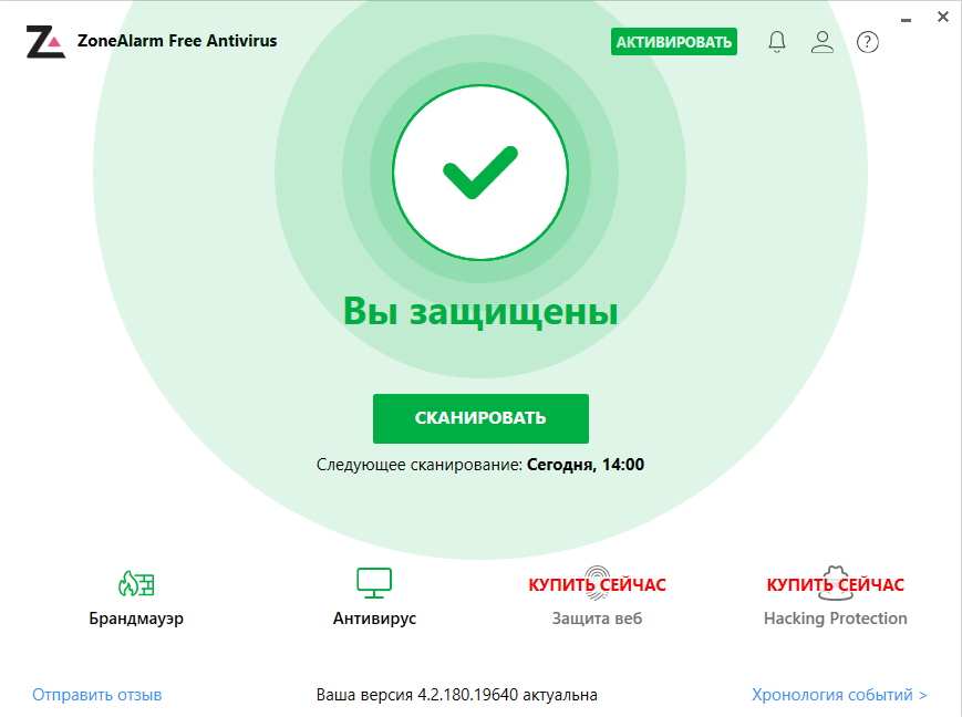 Скриншоты ZoneAlarm Free Antivirus NextGen
