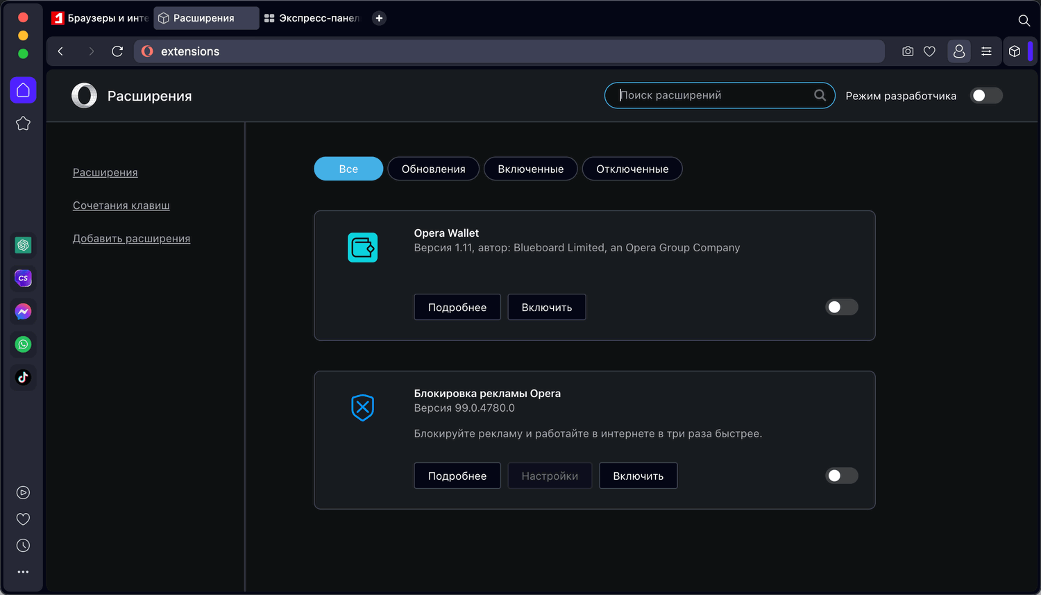 Скриншоты Opera One