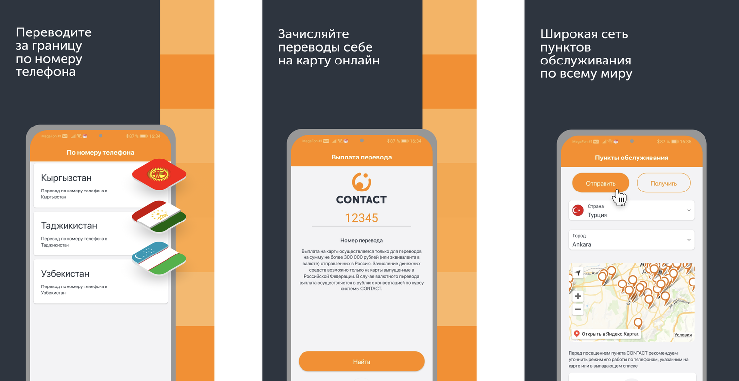 Скриншоты CONTACT для Android и iOS