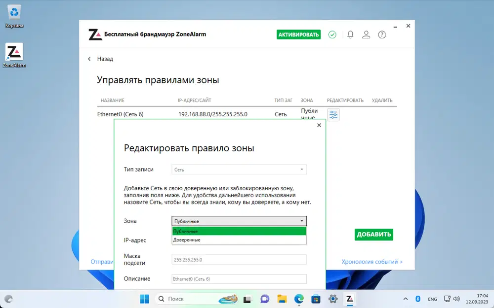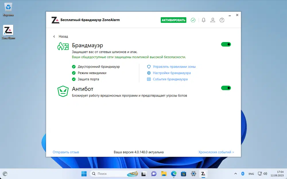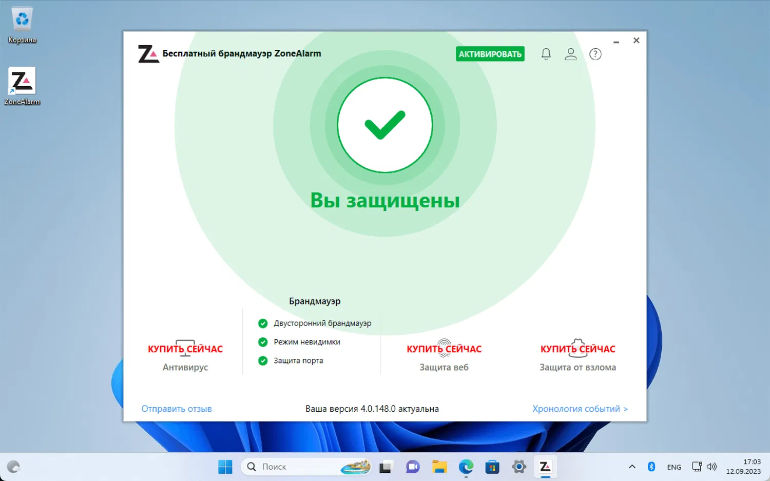 Скриншоты ZoneAlarm Free Firewall NextGen