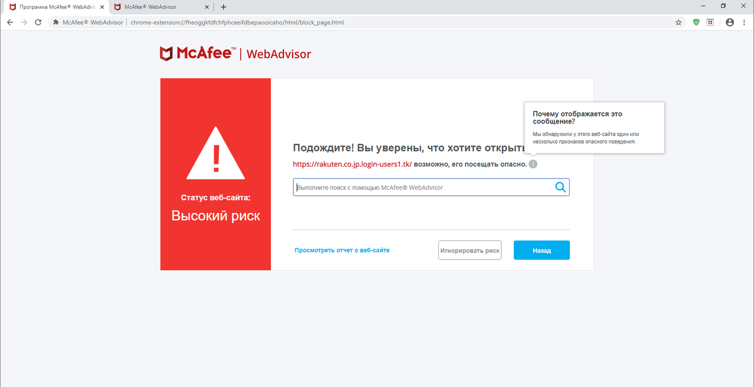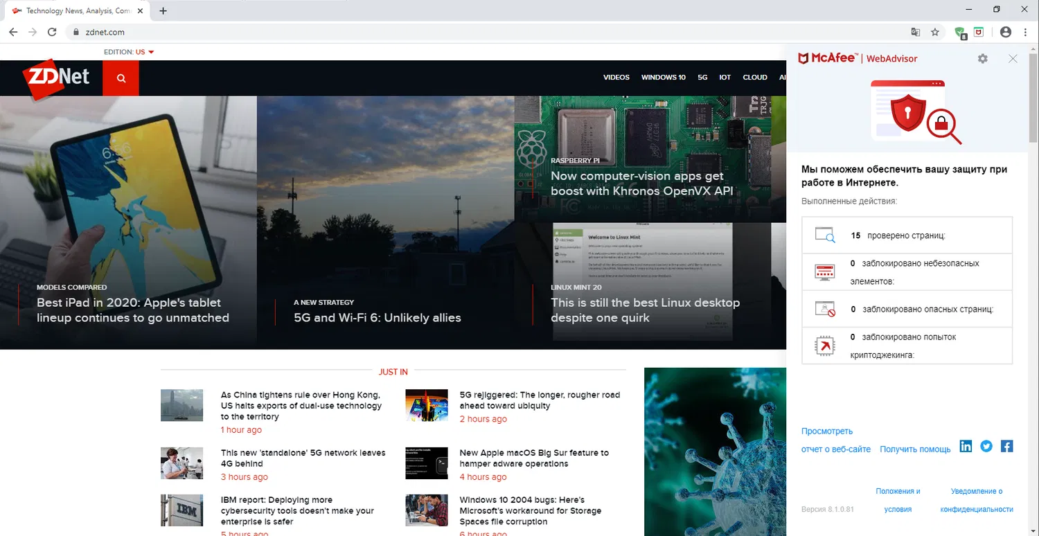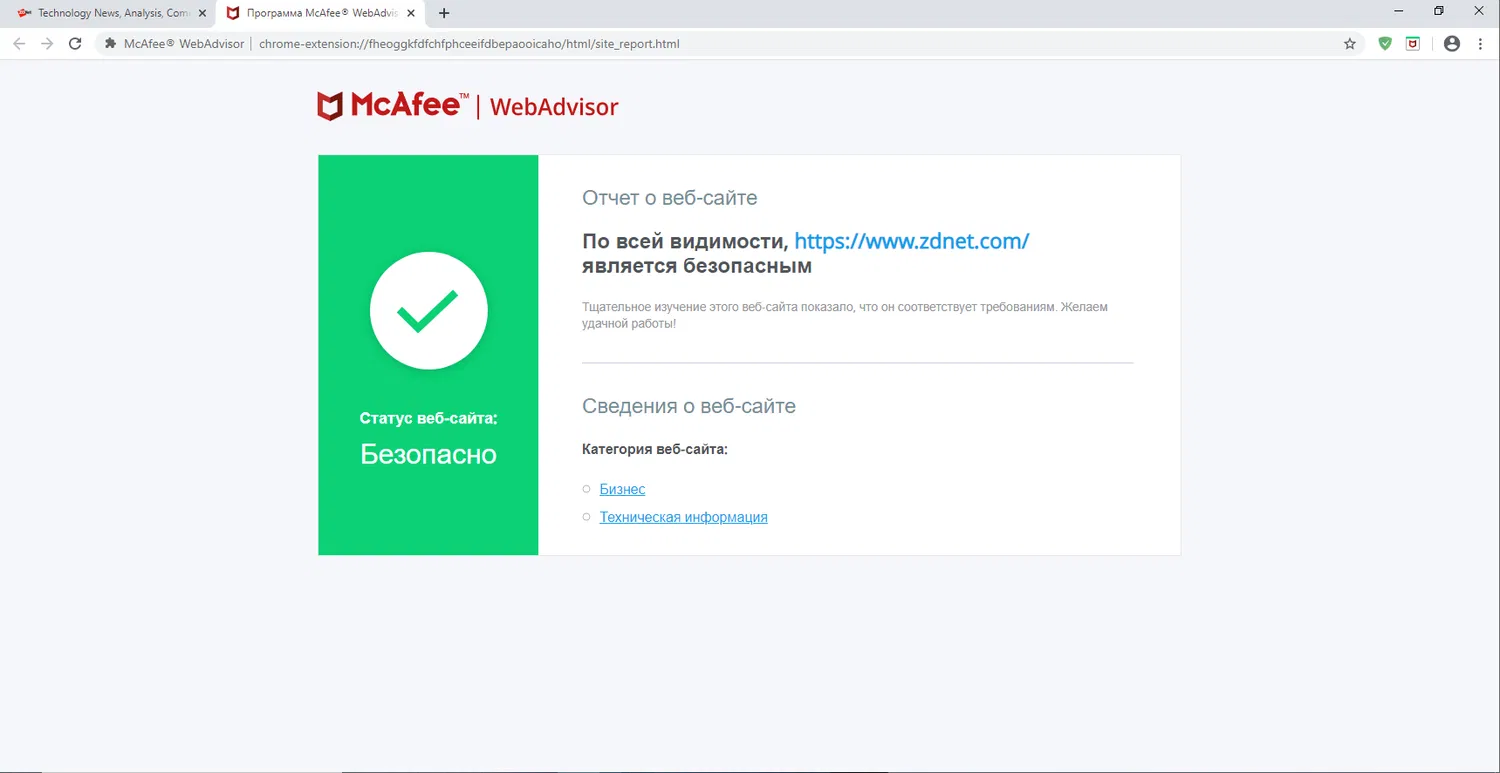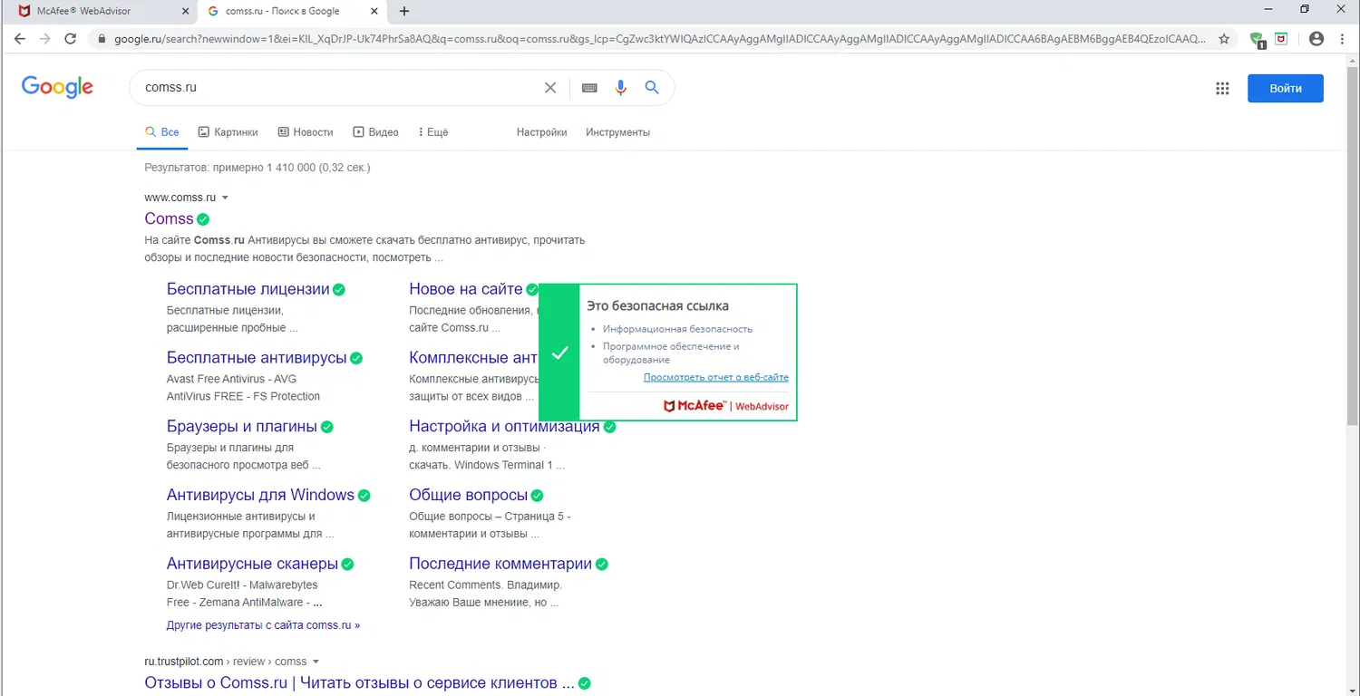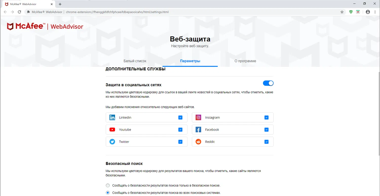 Скриншоты McAfee WebAdvisor