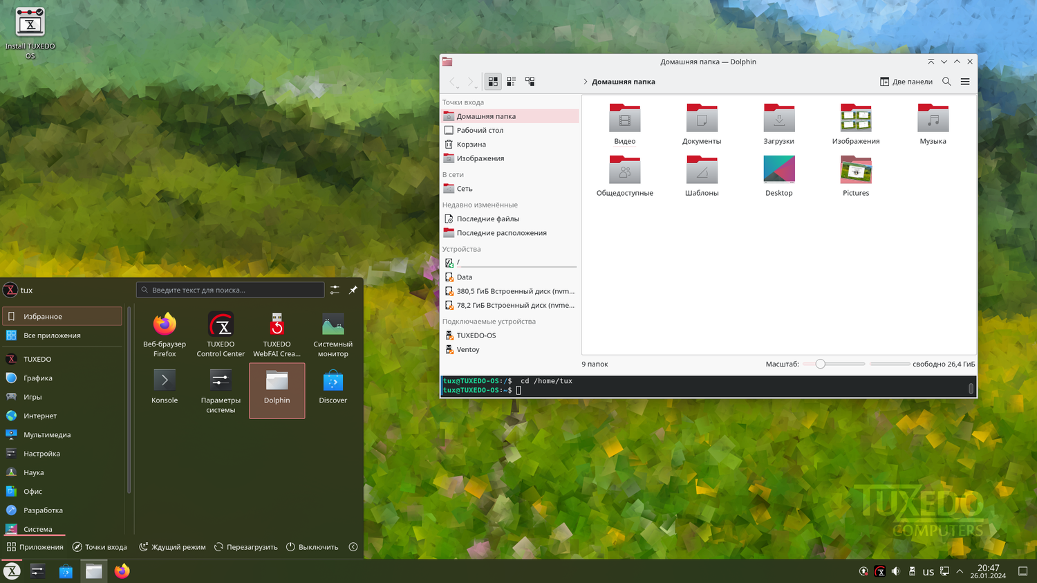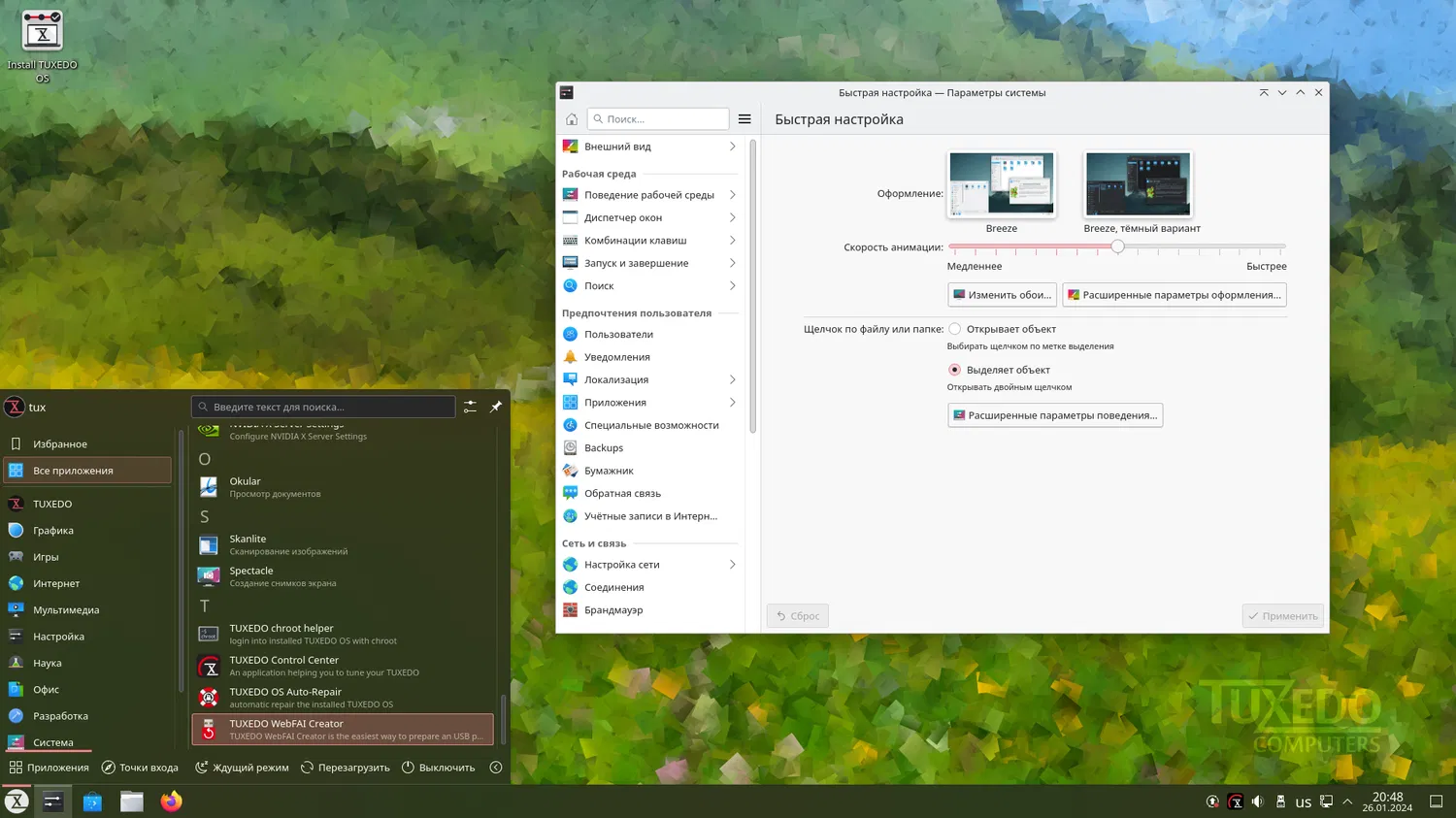 Скриншоты TUXEDO OS