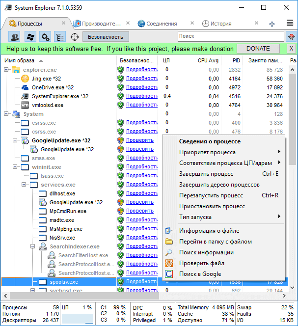 Скриншоты System Explorer