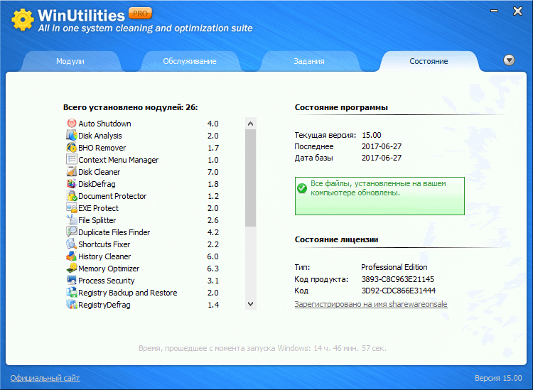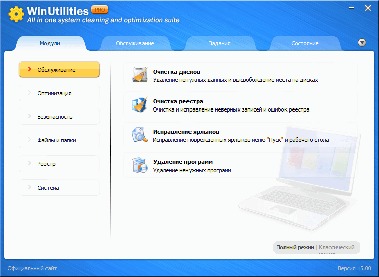 Скриншоты WinUtilities Free / Pro