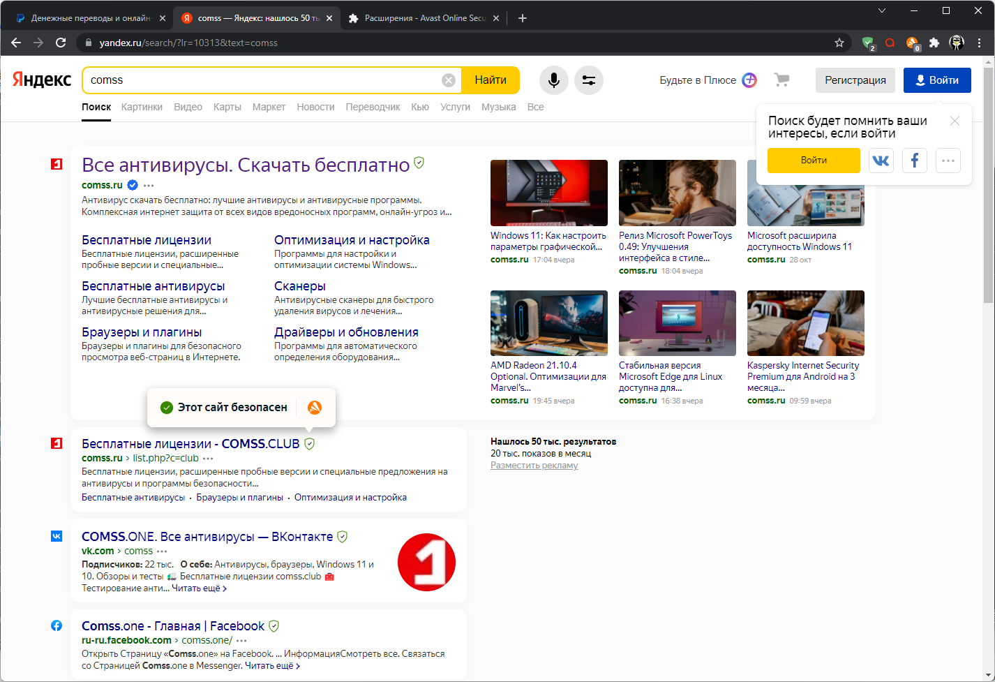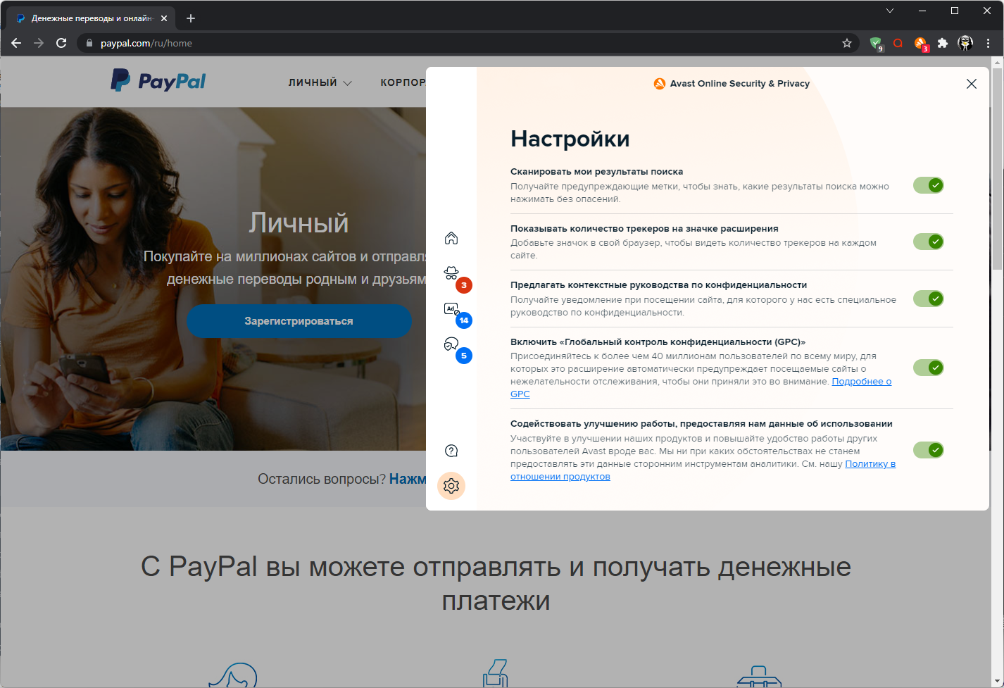 Скриншоты Avast Online Security