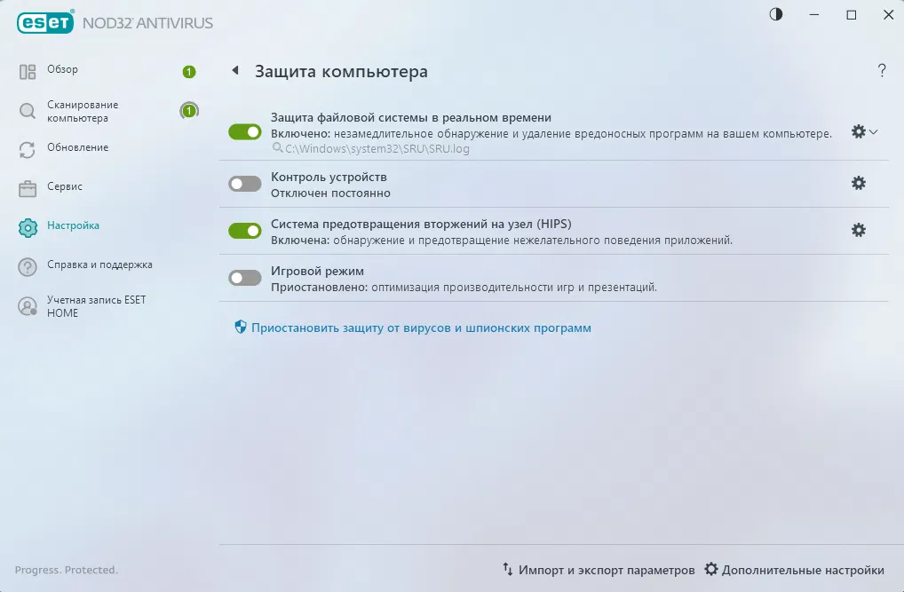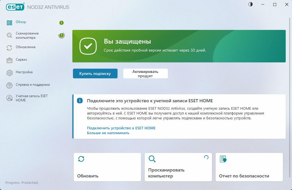 Скриншоты ESET NOD32 Antivirus