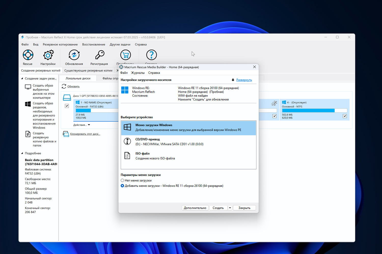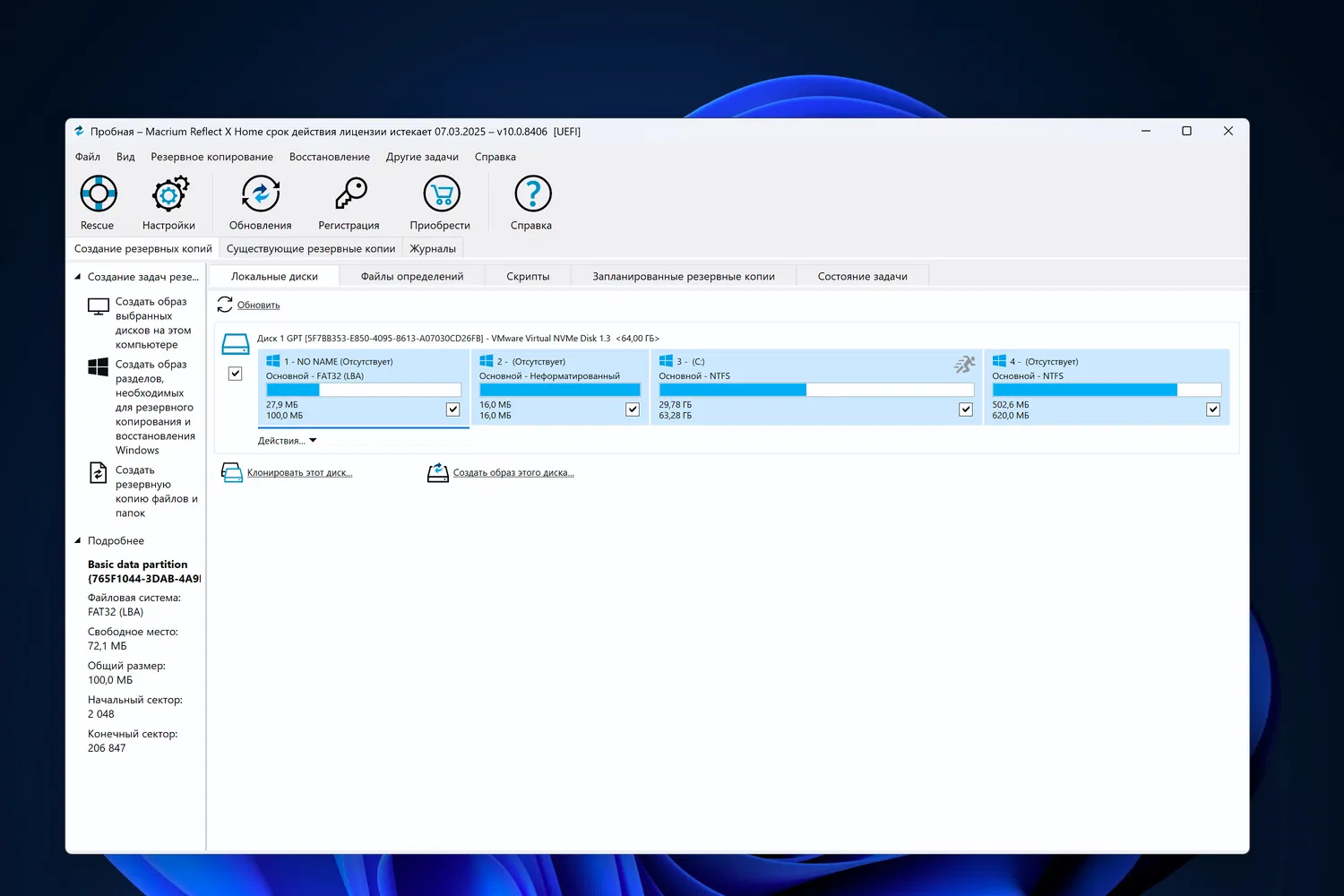 Скриншоты Macrium Reflect X Home
