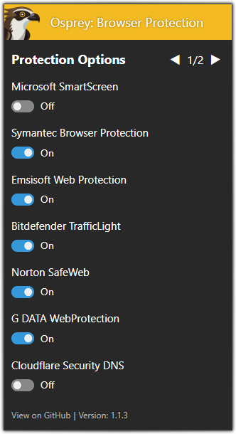 Скриншоты Osprey: Browser Protection