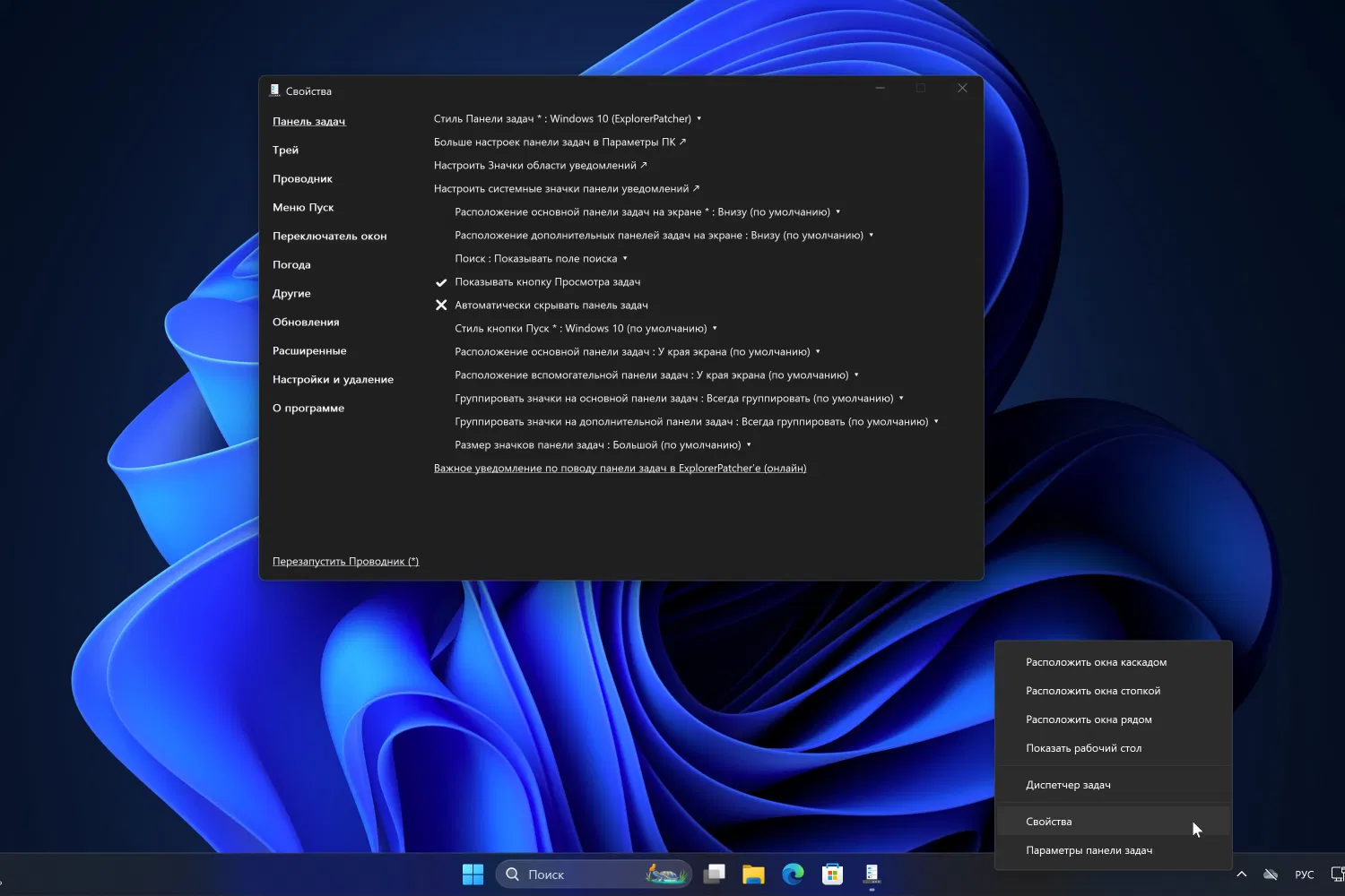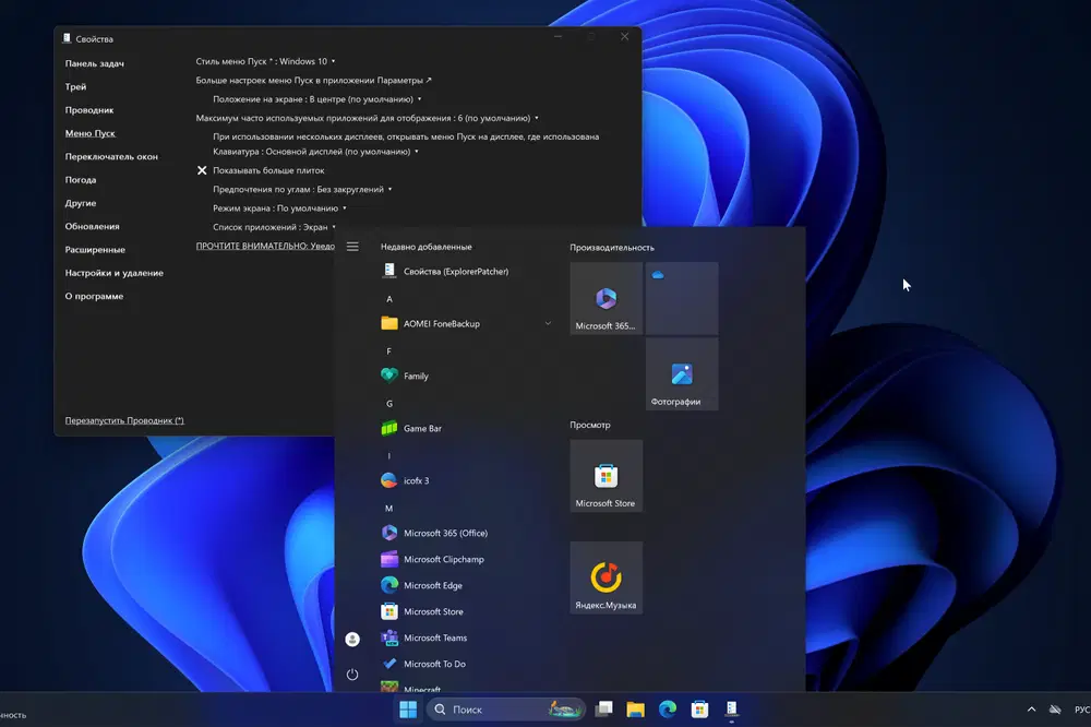 Скриншоты ExplorerPatcher