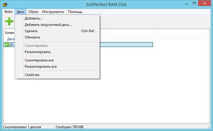 Скриншоты SoftPerfect RAM Disk