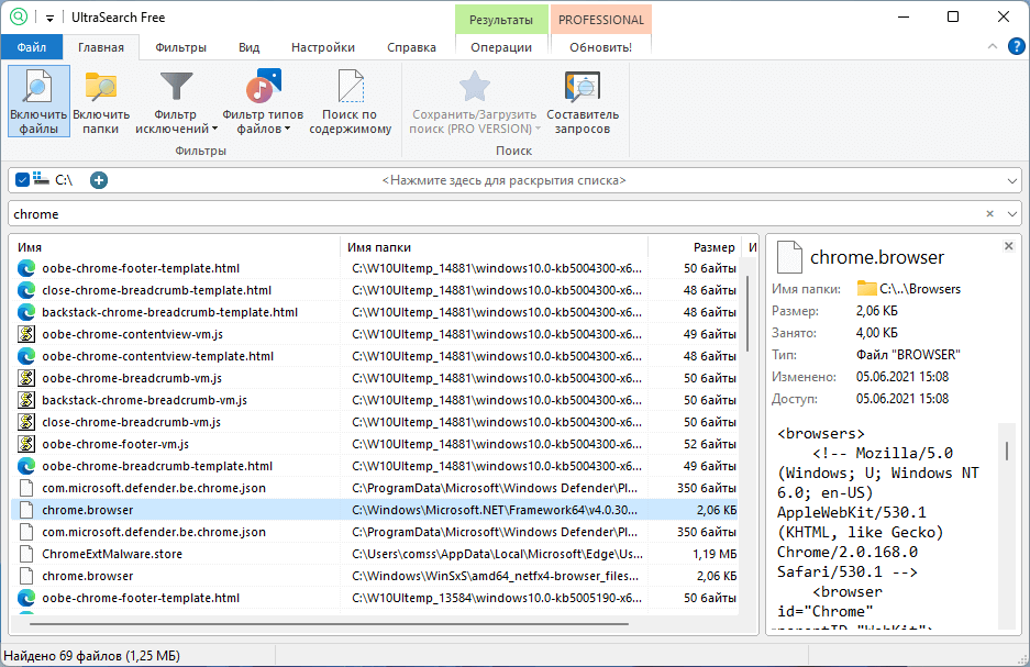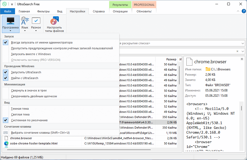 Скриншоты UltraSearch