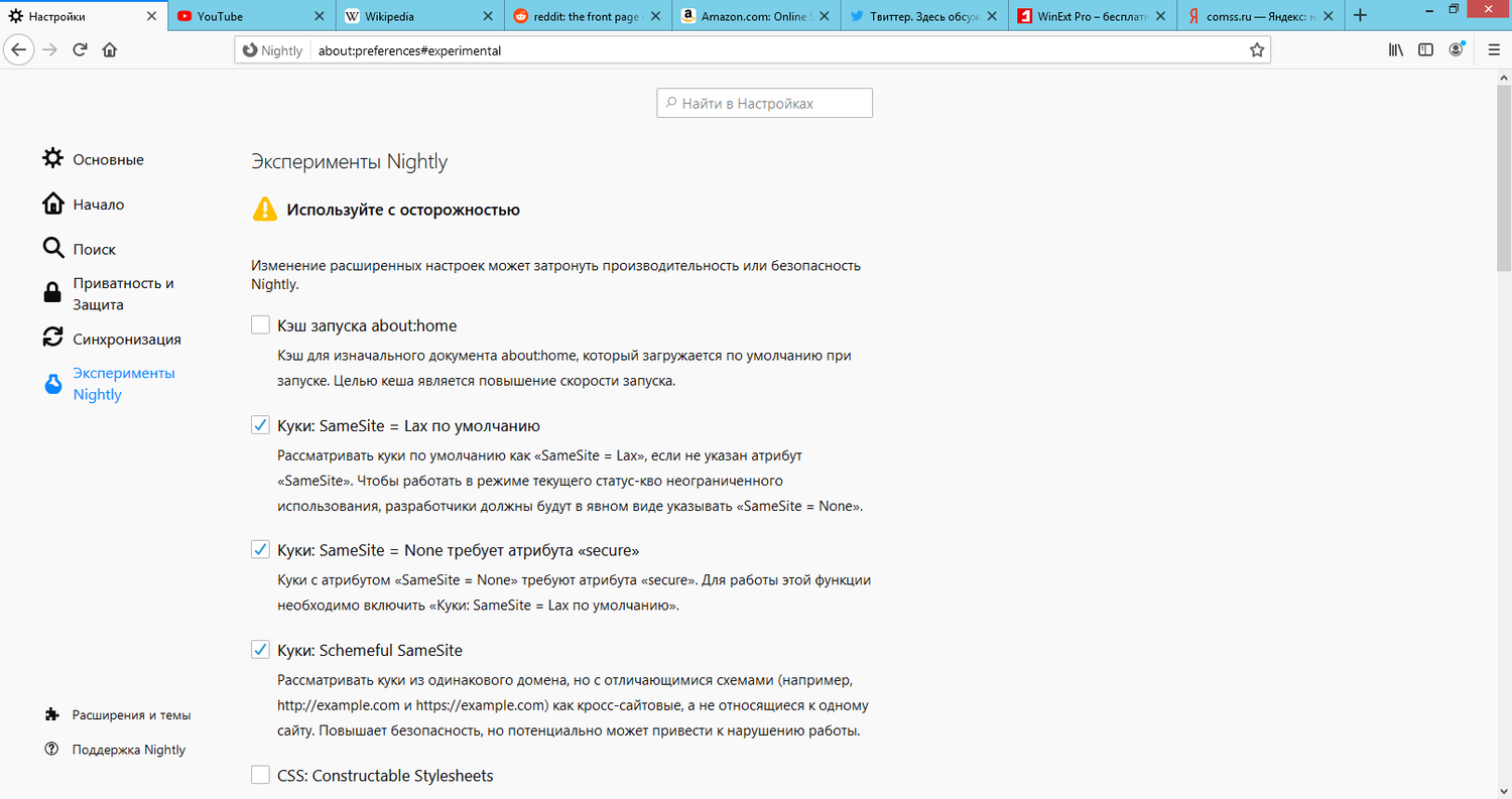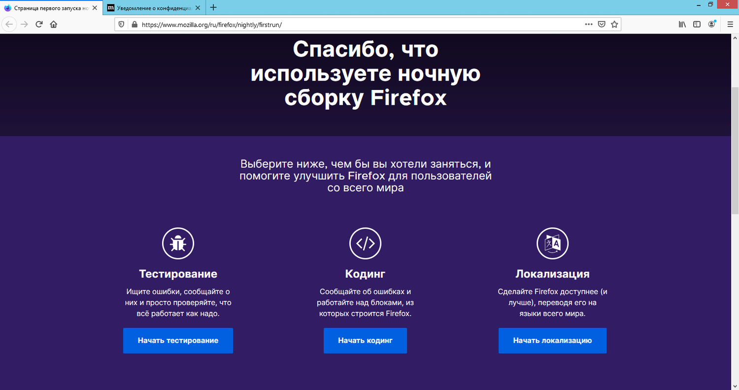 Скриншоты Firefox Browser (Beta, Dev, Nightly)
