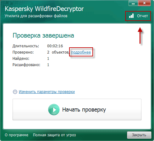 Скриншоты Kaspersky WildfireDecryptor