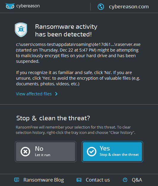 Скриншоты Cybereason RansomFree [проект закрыт]